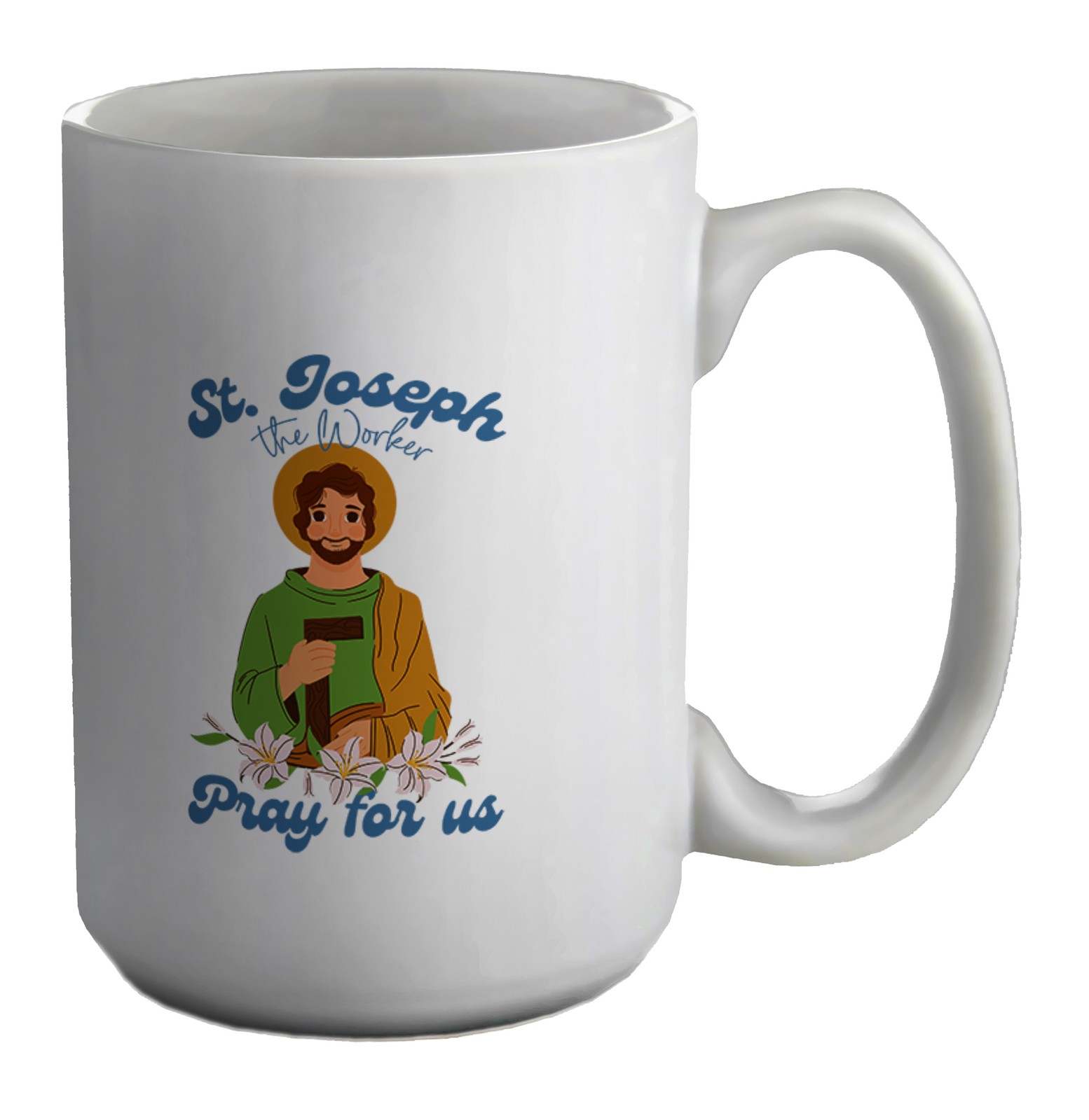 St Joseph The Worker Pray for Us Mug 15oz Large Cup Gift White