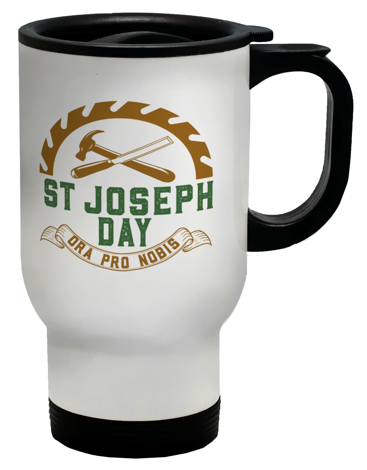 St Joseph Day Ora Pro Nobis Travel Mug Cup Gift White
