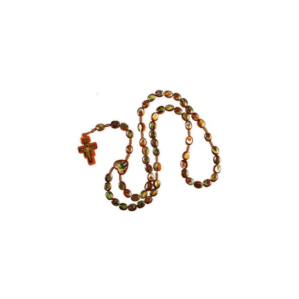 St Joseph's Catholic Giftshop Icon and Saints Rosary. Brown Wood Rope Necklace. 48 cm. Fits Over Head. Franciscan Crucifix. Assorted Saints.