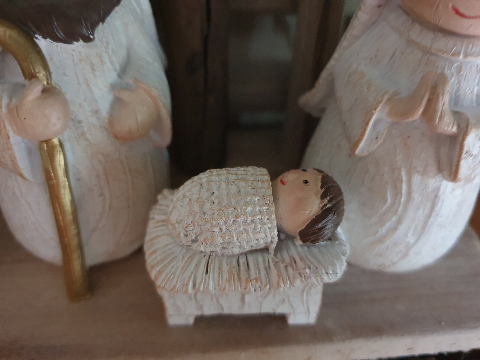 Resin and Wood Stable Nativity Set Christmas Religious Decor Mary, Joseph, Baby