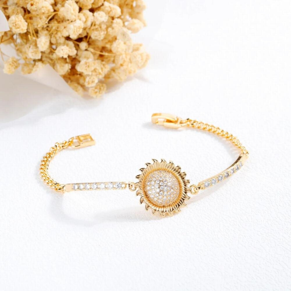 GorGor Bracelets Women Copper Pattern Sun Flower Cubic Zirconia Gold-color Light Temperament Party Accessories JS-970