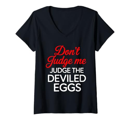 Womens Don’t Judge Me Judge The Deviled Eggs Funny Food Design V-Neck T-Shirt
