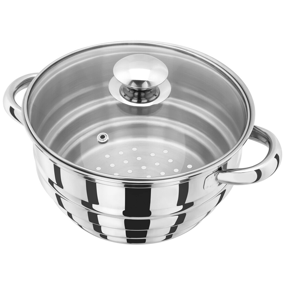 Essentials HX05 Stainless Steel 3 Tier Steamer 24cm Vented Glass Lid Integral Casserole Pot Oven Safe Induction Ready 25 Year Guarantee