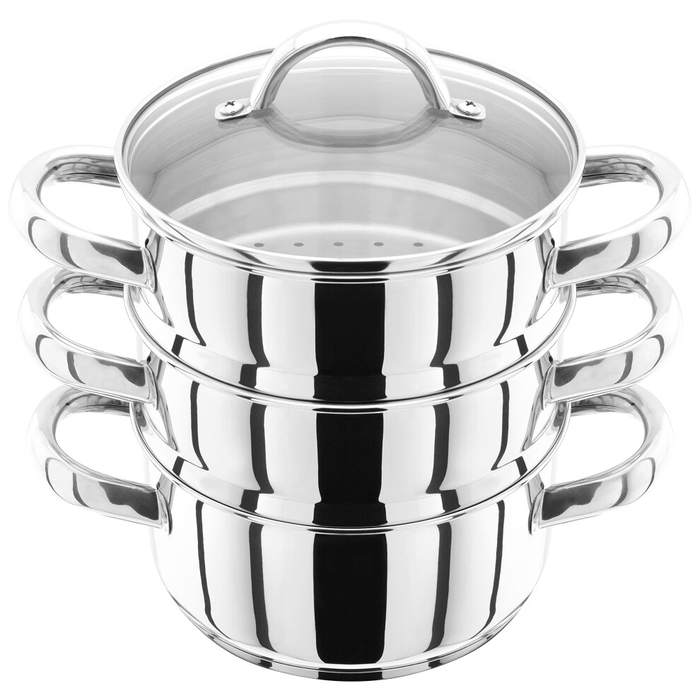 Judge 18cm Durable 18/10 Stainless Steel 3 Tier Steamer with Glass Lid JX02
