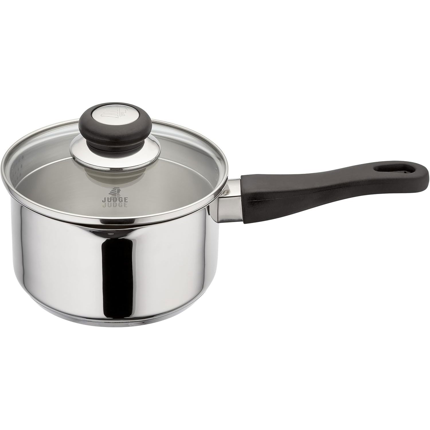 Judge Vista Stainless Steel Non-Stick Medium Saucepan 16cm 1L, Shatterproof Vented Glass Lid, Induction Ready, Oven Safe, 25 Year Guarantee