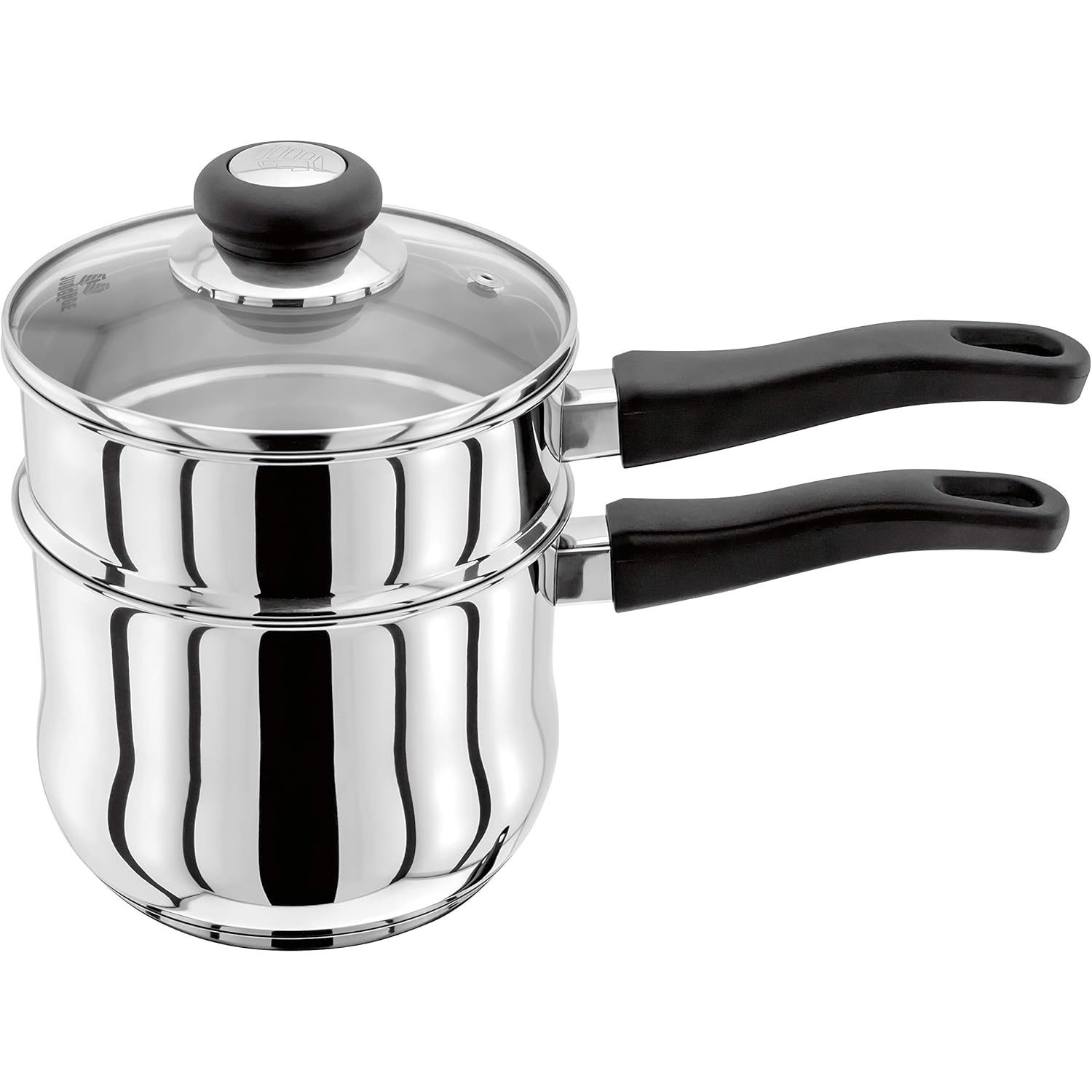 Judge Vista Stainless Steel Porringer/Double Boiler/Bain Marie Saucepan and Base 16cm, 1.5L, Shatterproof Vented Glass Lid, Induction Ready, Oven Safe