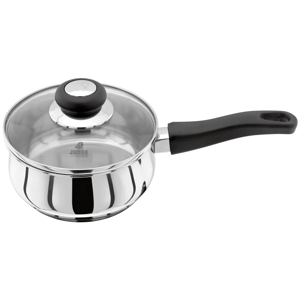 Judge Vista Stainless Steel Medium Saucepan, 16cm, 1L Shatterproof Vented Glass Lid, Induction Ready, Oven Safe