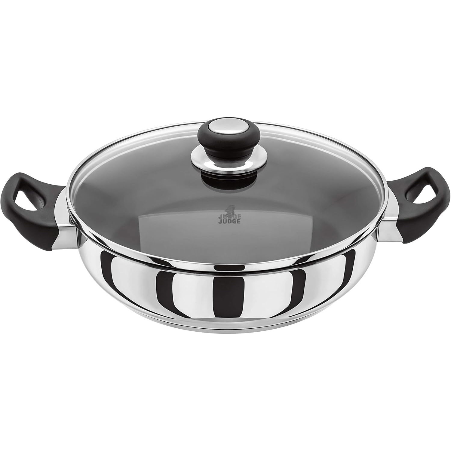 Judge Vista Stainless Steel Non-Stick Shallow Casserole 24cm, Frying Pan with Shatterproof Glass Lid, Induction Ready, Oven Safe