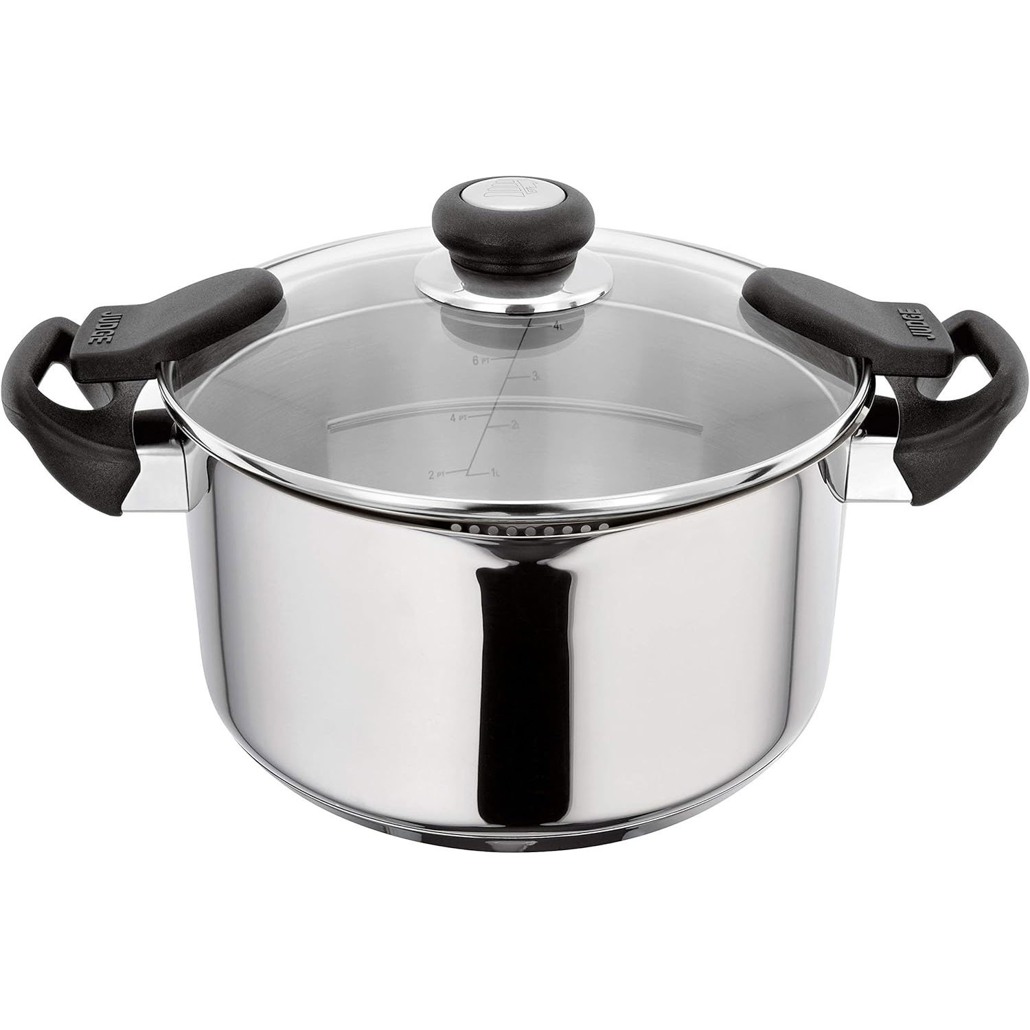 Judge Vista Stainless Steel Extra Large Stockpot with Twin Handles 24cm, 5L, Shatterproof Vented Glass Lid, Induction Ready, Oven Safe