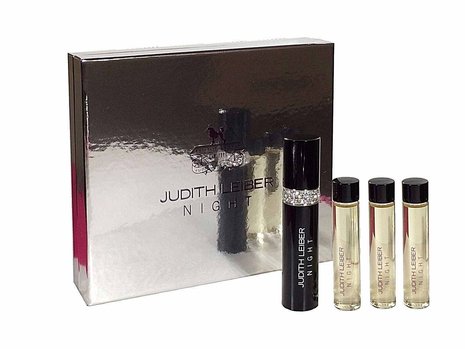 Gift Set Judith Leiber Night Parfum Spray 3x 10ml Refills Chrystal Ring Woman