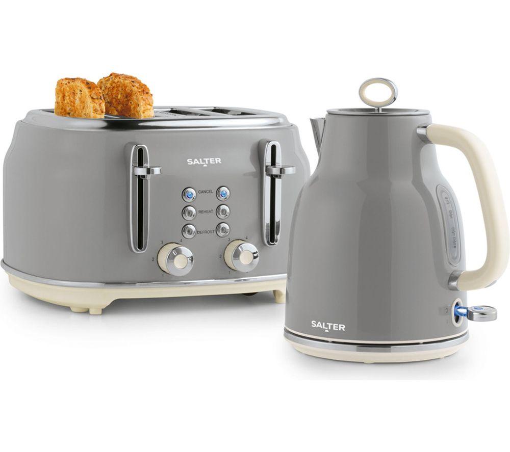 SALTER COMBO-9191 Retro Jug Kettle and 4-Slice Toaster Bundle - Grey, Silver/Grey