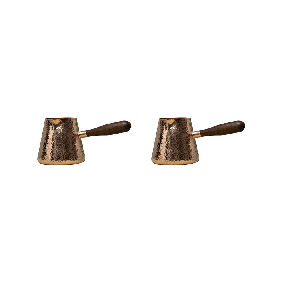 2X 500ml Pure Copper Latte Pitcher Milk Jug with Wooden Handle Kettles Hammer Handcraft Drinkware Tableware