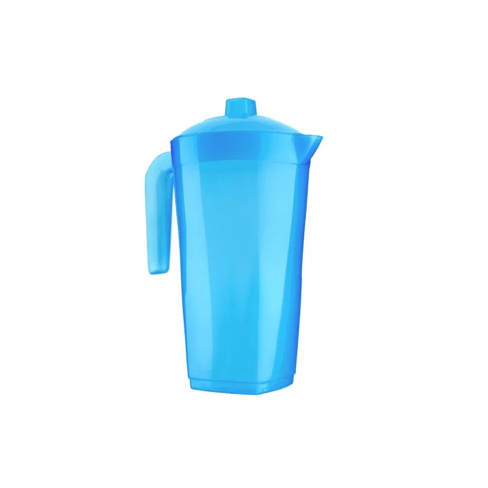 (Blue) Plastic Fridge Jug With Lid Pitcher Water Juice Milk Kitchen Picnic Colourd 1.6L