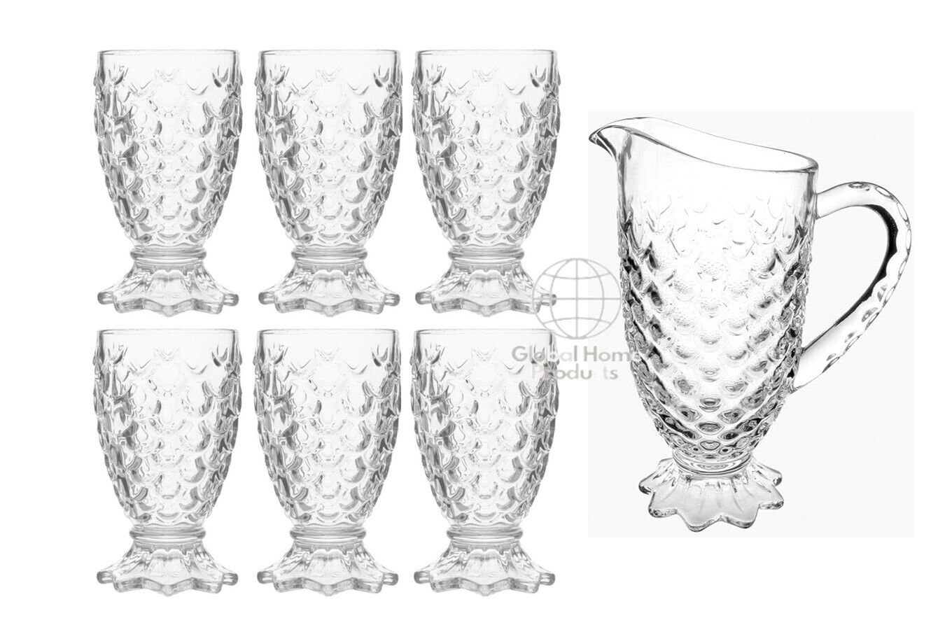 7Pc Glass Pitcher Jug With Tumblers Glasses Water Set Drinkware Carafe Gift