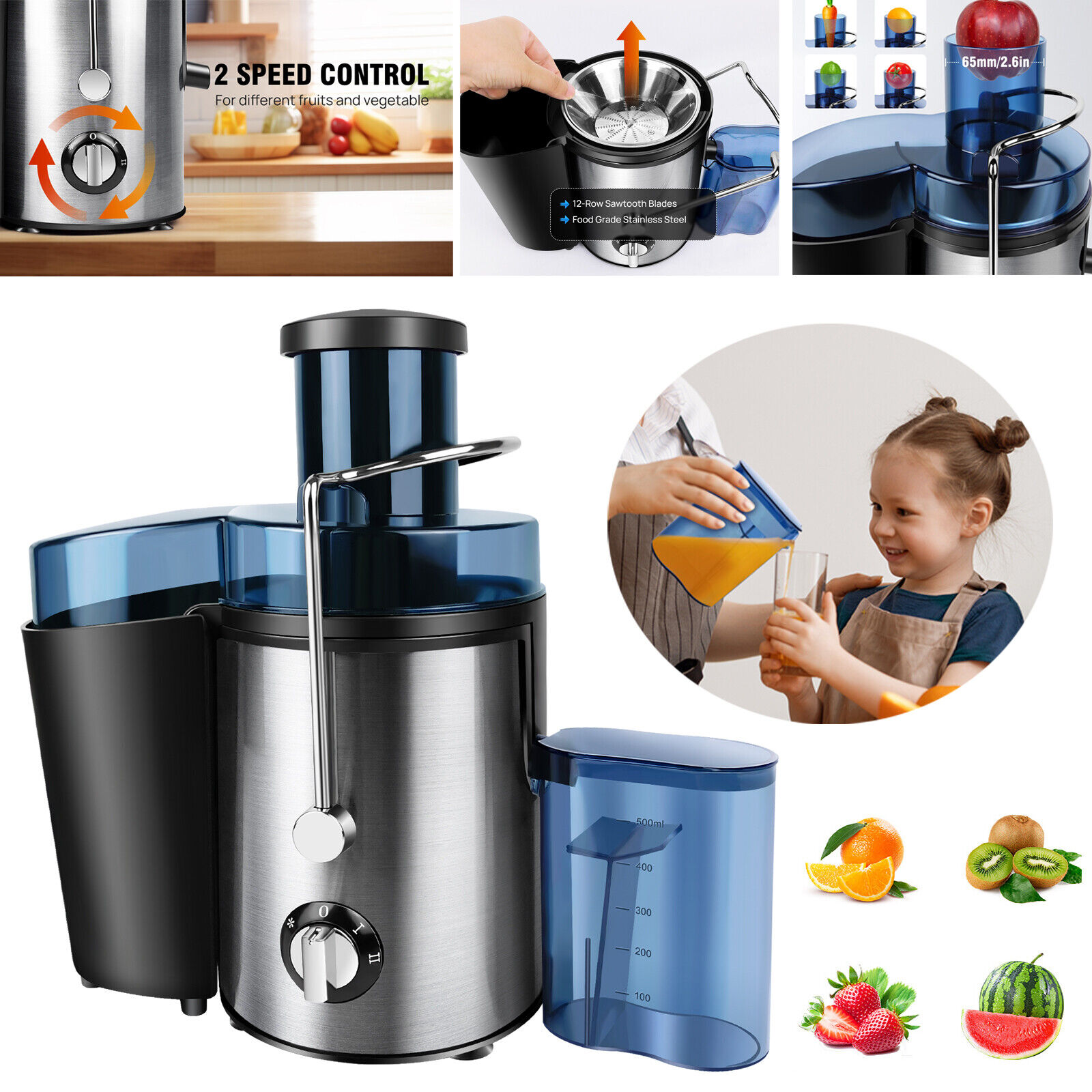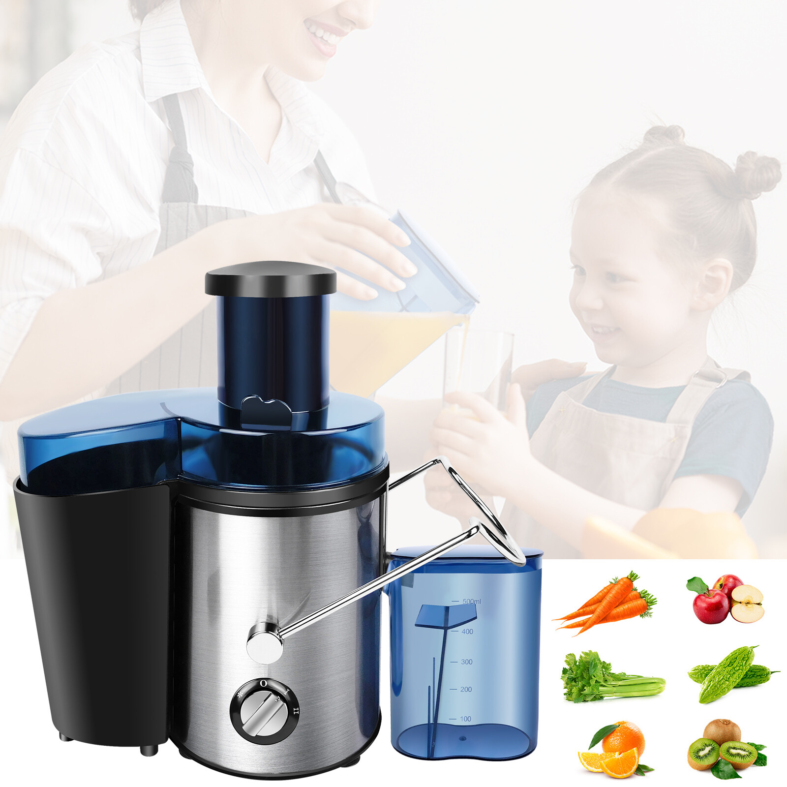 Powerful Juicer Machine Juice Maker Whole Fruit Extractor Centrifugal 500ML Cup