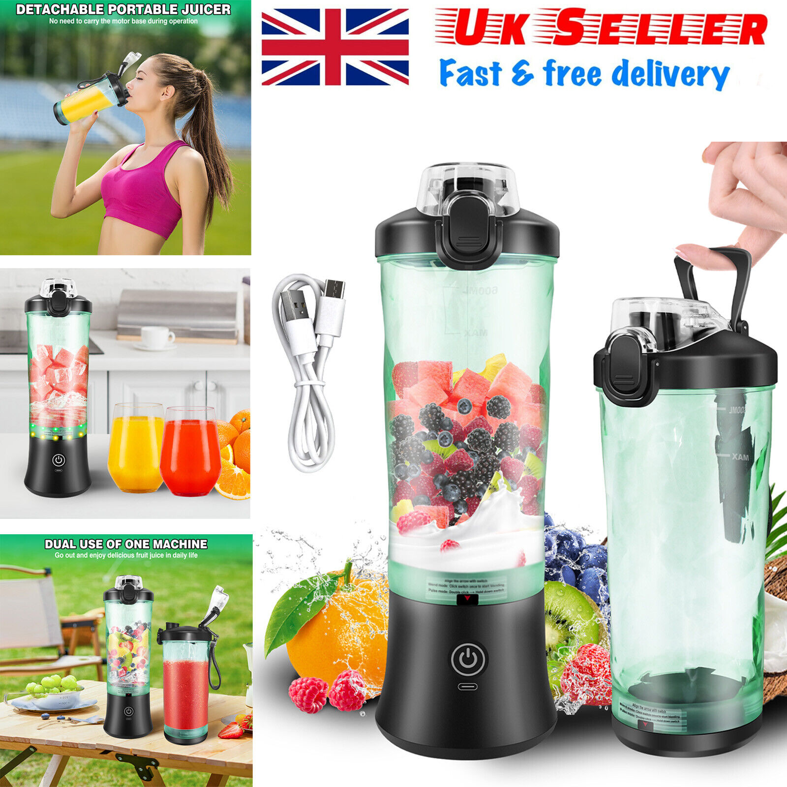 Portable Electric Mini Juicer Blender Mixer Shaker Bottle Juice Maker Machine UK
