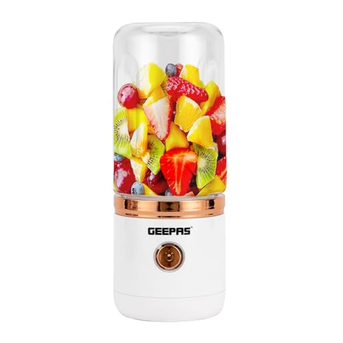 Geepas Portable Blender, Smoothie Maker - 420ML Personal Blender with Rechargeable USB Type-C and 6 Blades, Fruit Mixer Juicer Mini Portable Blender Cup for Travel Kitchen Gym Office, White