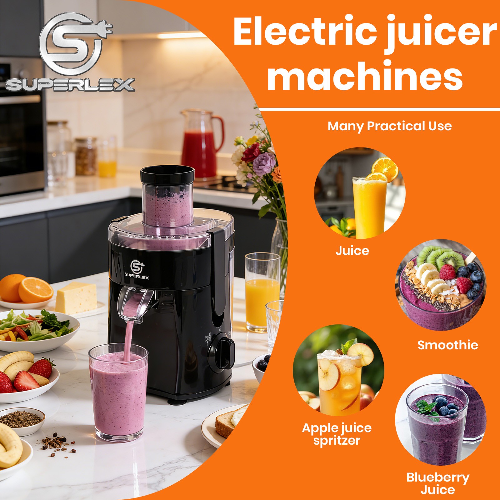 SUPERLEX Orange Juicer Machine Electric Citrus Juicer BPA-Free Lemon Extractor
