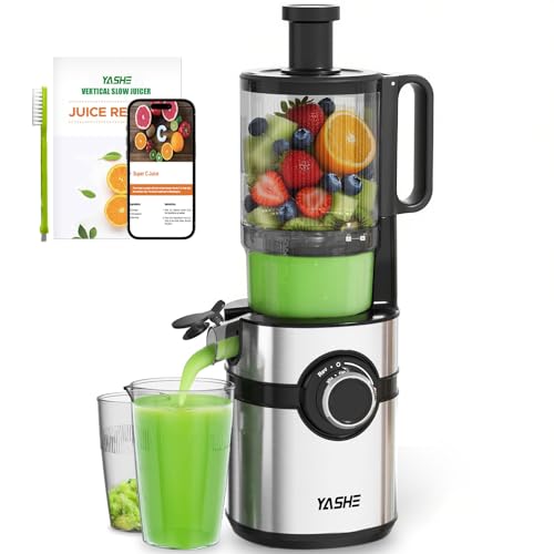 Cold Press Juicer, YASHE Juicer Machine with 5'' Large Feed Chute for Whole Vegetables and Fruits, Juice Maker with Self Feeding, High Juice Yield, Easy to Clean, Black
