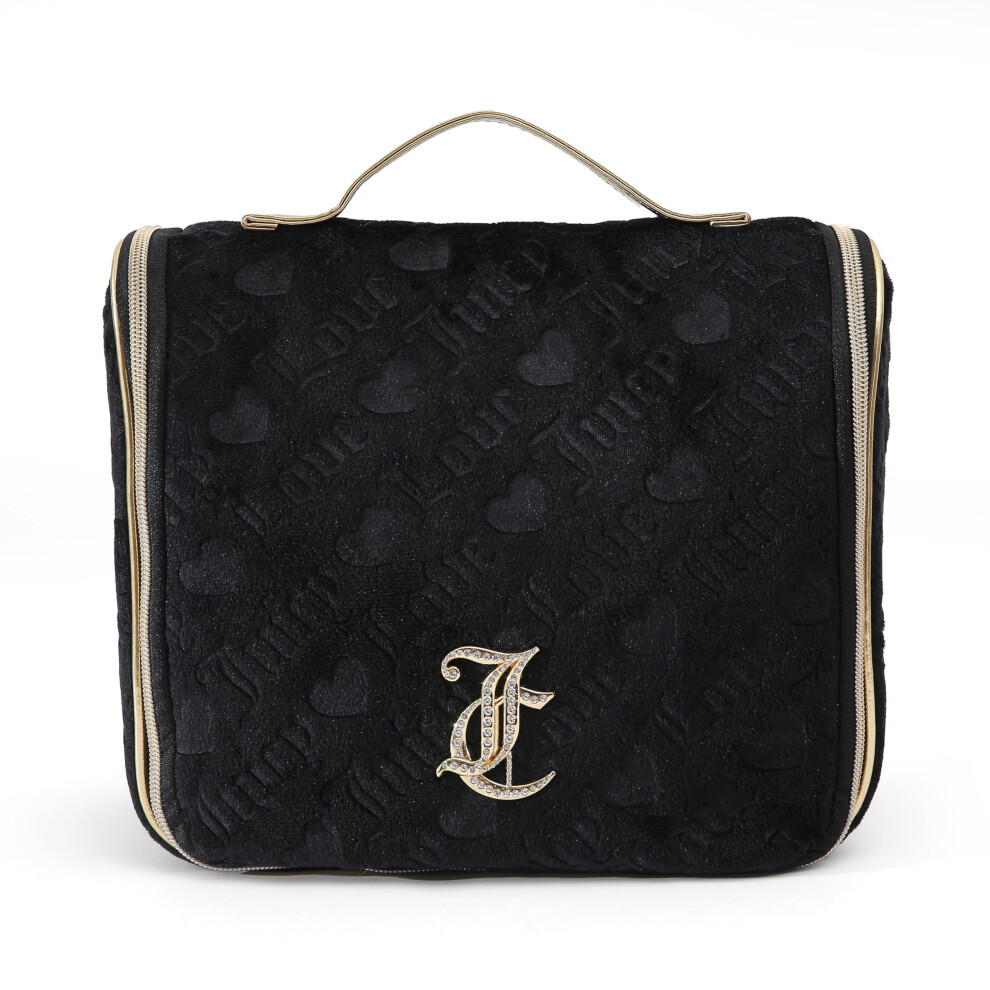Juicy Couture Black Makeup Bag Cosmetics Organizer Travel Essentials Hanging Hook Heart Velour