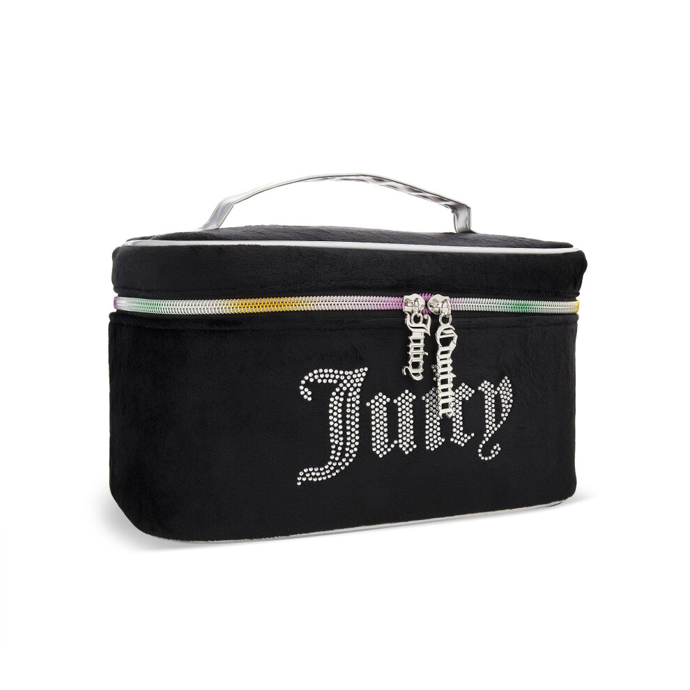 Juicy Couture Black Rainbow Makeup Bag Cosmetics Organizer Travel Essentials Train Case Velour Rhinestones