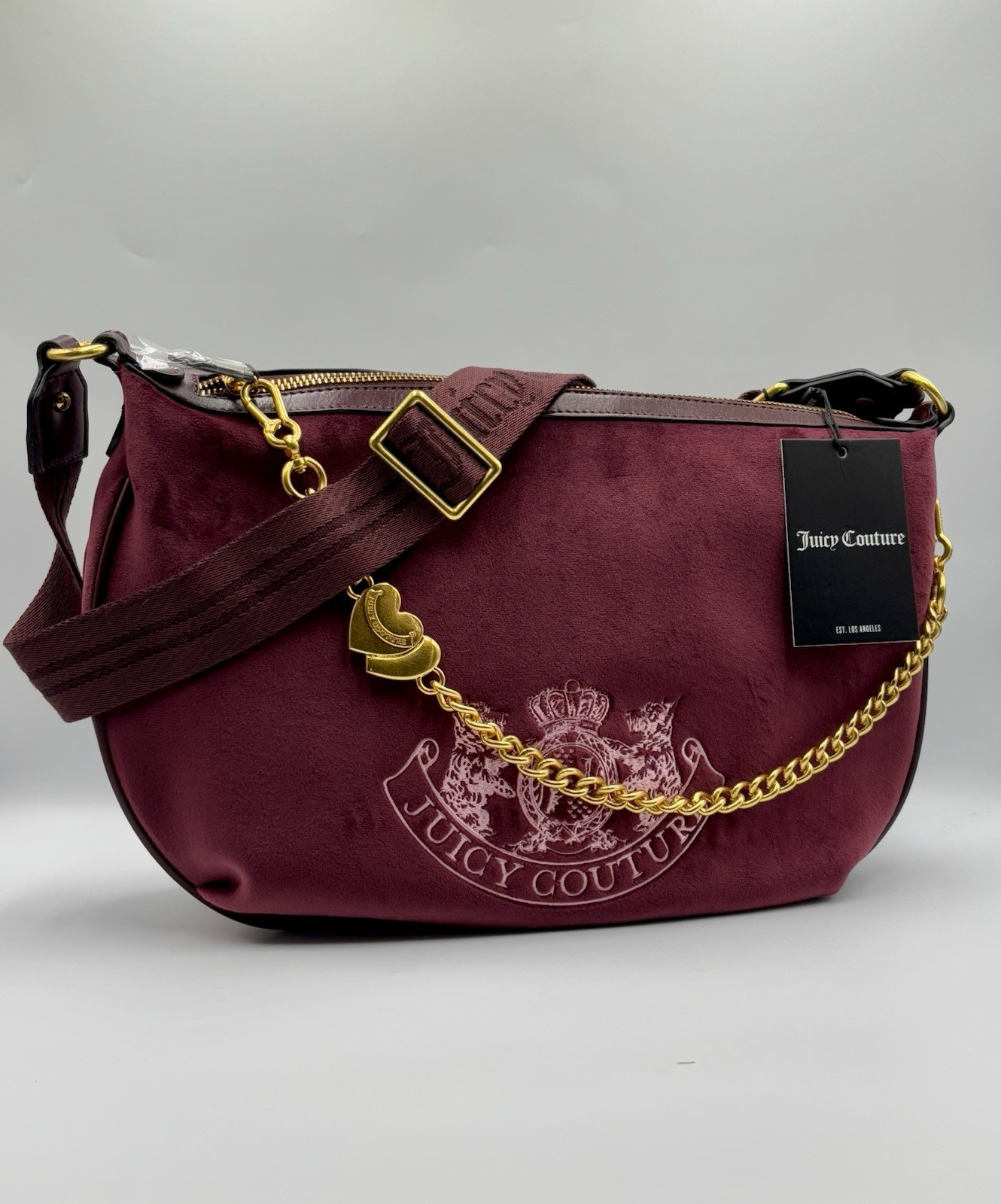 Juicy Couture Twig Dogs Velour Shoulder Bag Purse Burgundy Heart Chain Y2K