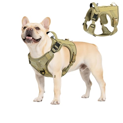 VavoPaw Heavy Duty Tactical Dog Harness for Small Dogs, No Pull Adjustable Pet Harness Reflective Service Training Easy Control Pet Vest Military K9 Working Dog Harnesses, Army Yellow, S