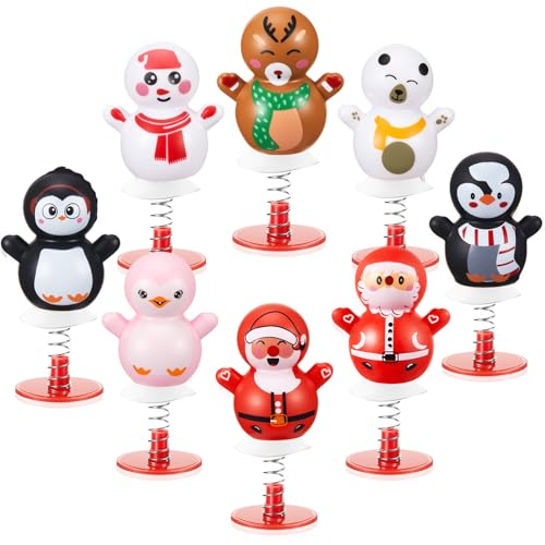 Suilung 8 Pcs Christmas Jump up Toys Christmas Party Novelty Favors Popping Toy Santa Snowman Jumping Toys Launchers for Party Bag Fillers, Stocking Fillers, Classroom Prizes Gifts (Cute)