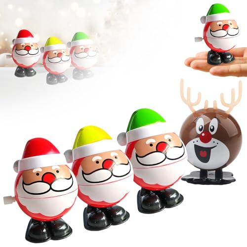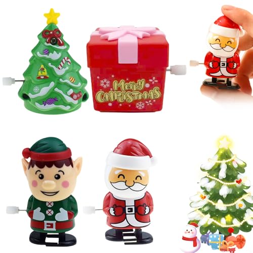Christmas Wind Up Toys for Kids,4 Pack Christmas Party Toys Set Novelty Clockwork Toy Walking Wind-up Spring Toy for Xmas Stocking Funny Jumping Toys for Christmas Party Favor Goody Bag Filler