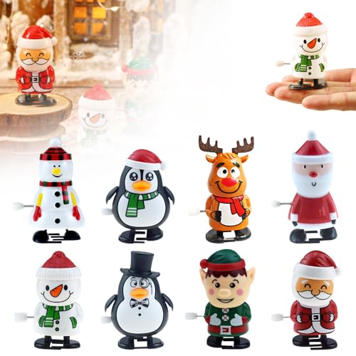 Feelfly 8 Pack Christmas Wind Up Toys, Assorted Clockwork Toys Christmas Wind-Up Toy Assortments Mini Jumping Walking Toys Goody Bag Fillers Christmas Party Favors for Kids Boys and Girls (#B)