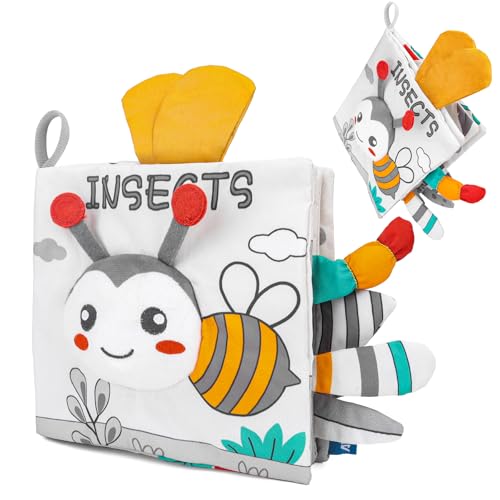 syid Baby Book Toys, Baby Toys 0-6 Months Sensory Books Jungle Tails Soft Touch and Feel Crinkle Cloth Books, Newborn Infant Essentials Gifts for 0 3 6 12 Months Boys Girls (Bee)