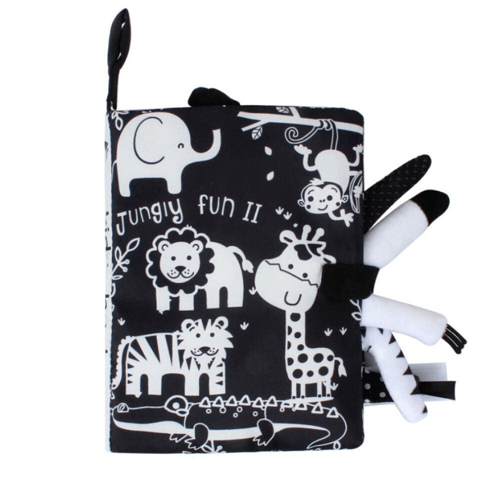 (Black White Jungle Animal) Baby Kids Animal Tails Cloth Book Soft Early Development Newborn Crib Toys Books