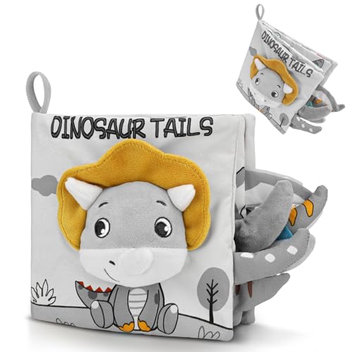 syid Baby Book Toys, Baby Toys 0-6 Months Sensory Books Jungle Tails Soft Touch and Feel Crinkle Cloth Books, Newborn Infant Essentials Gifts for 0 3 6 12 Months Boys Girls (Dinosaur)