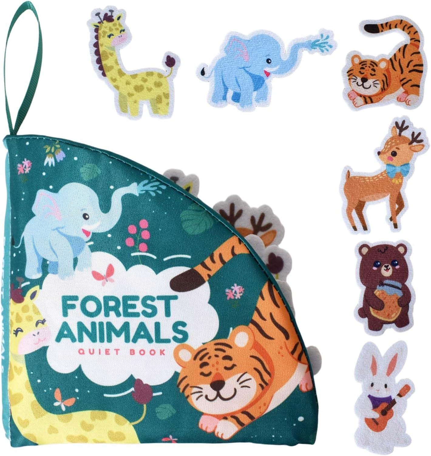 Soft TUMAMA KIDS Cloth Books, Sensory Book Toys 3D Jungle Tails, Squeaker and Cr