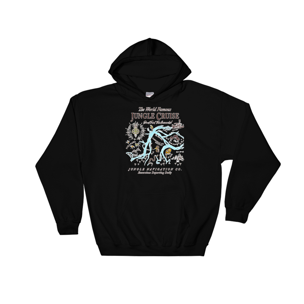 (Large, Black) The World Famous Jungle Cruise Poster Black Men Women Unisex Hooded Sweatshirt Hoodie