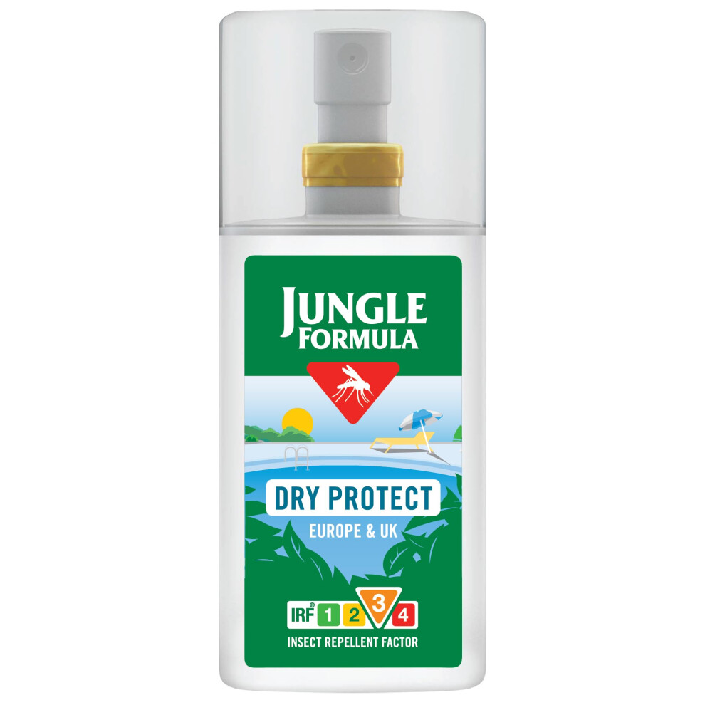 Jungle Formula Dry Protect Insect Repellent (90ml Spray Bottle) - DEET Free Mosquito, Midge & Biting Insect Repellent - Up To 6 Ho
