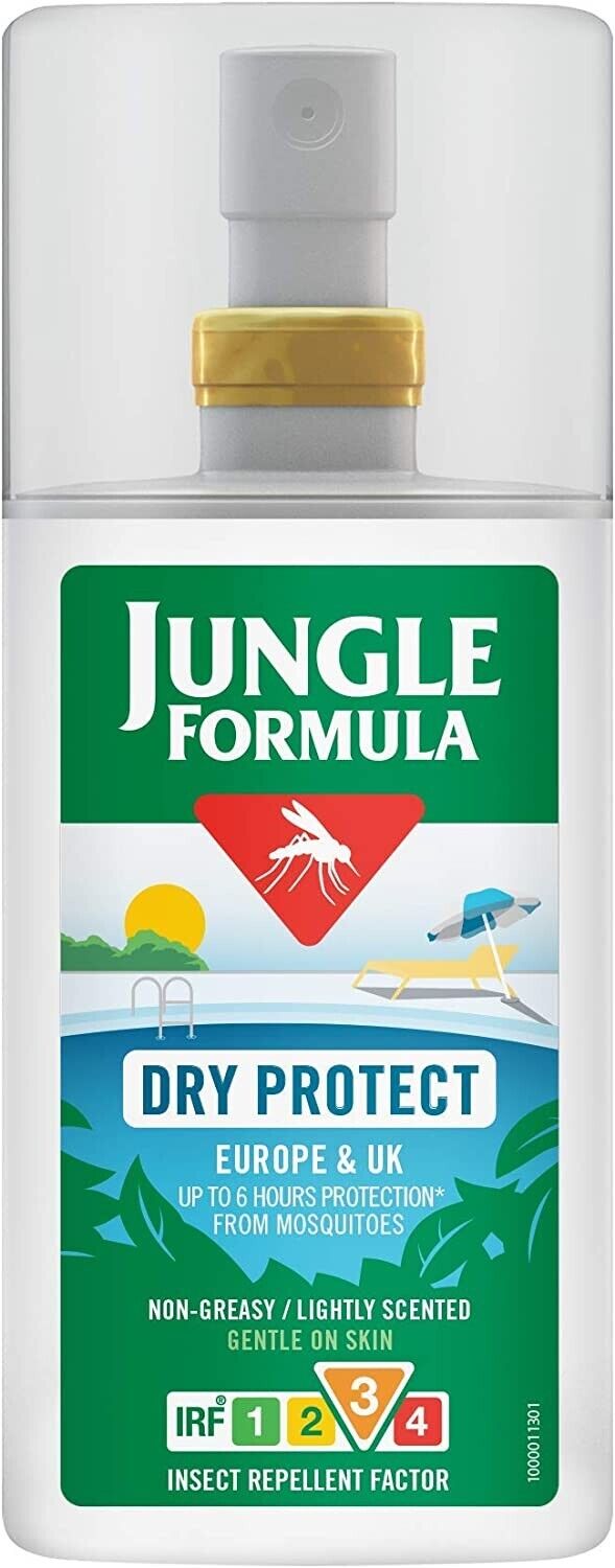 Jungle Formula Dry Protect Insect Repellent (90ml Spray Bottle) - DEET Free Mosquito, Midge & Biting Insect Repellent - Up To 6 Hours Protection From Bites - Non Greasy, Lightly Fragranced Bug Spray