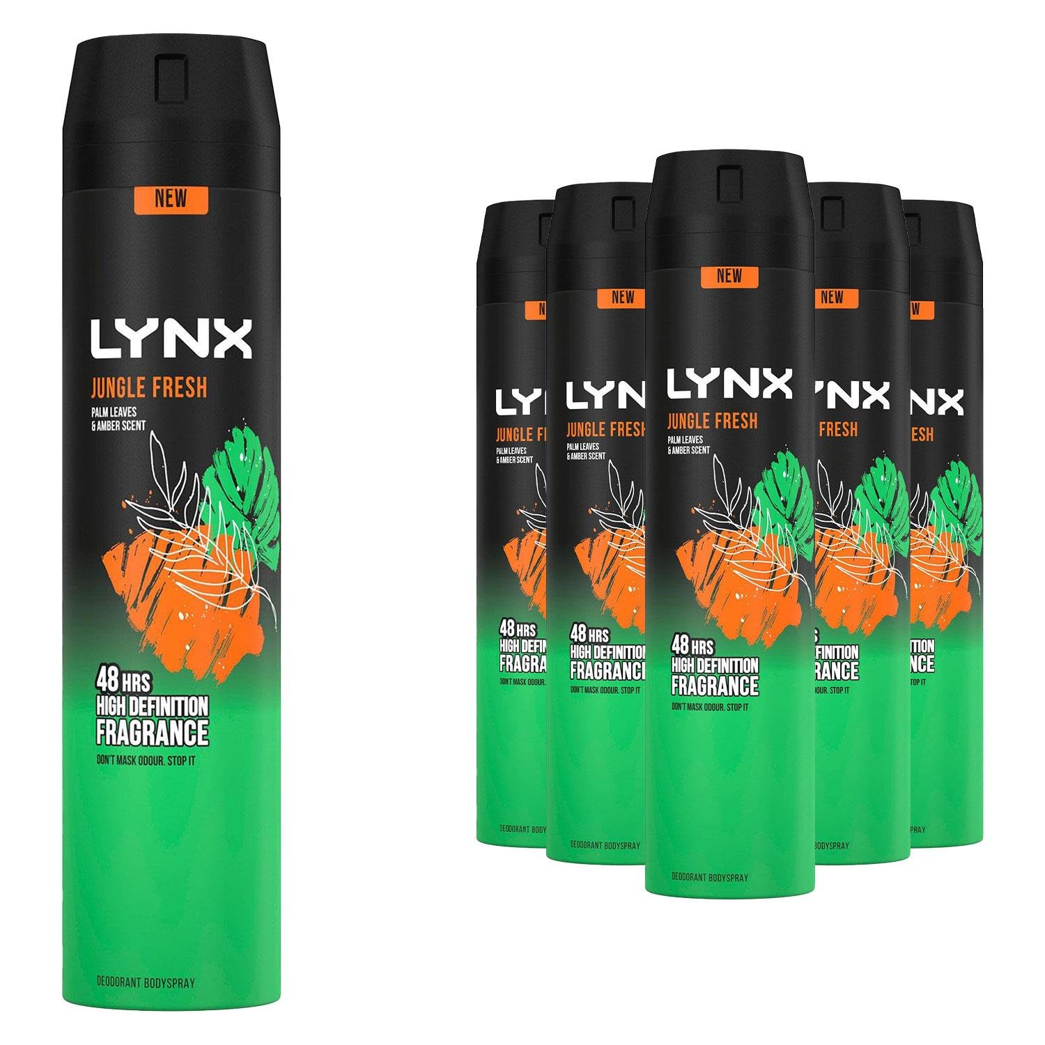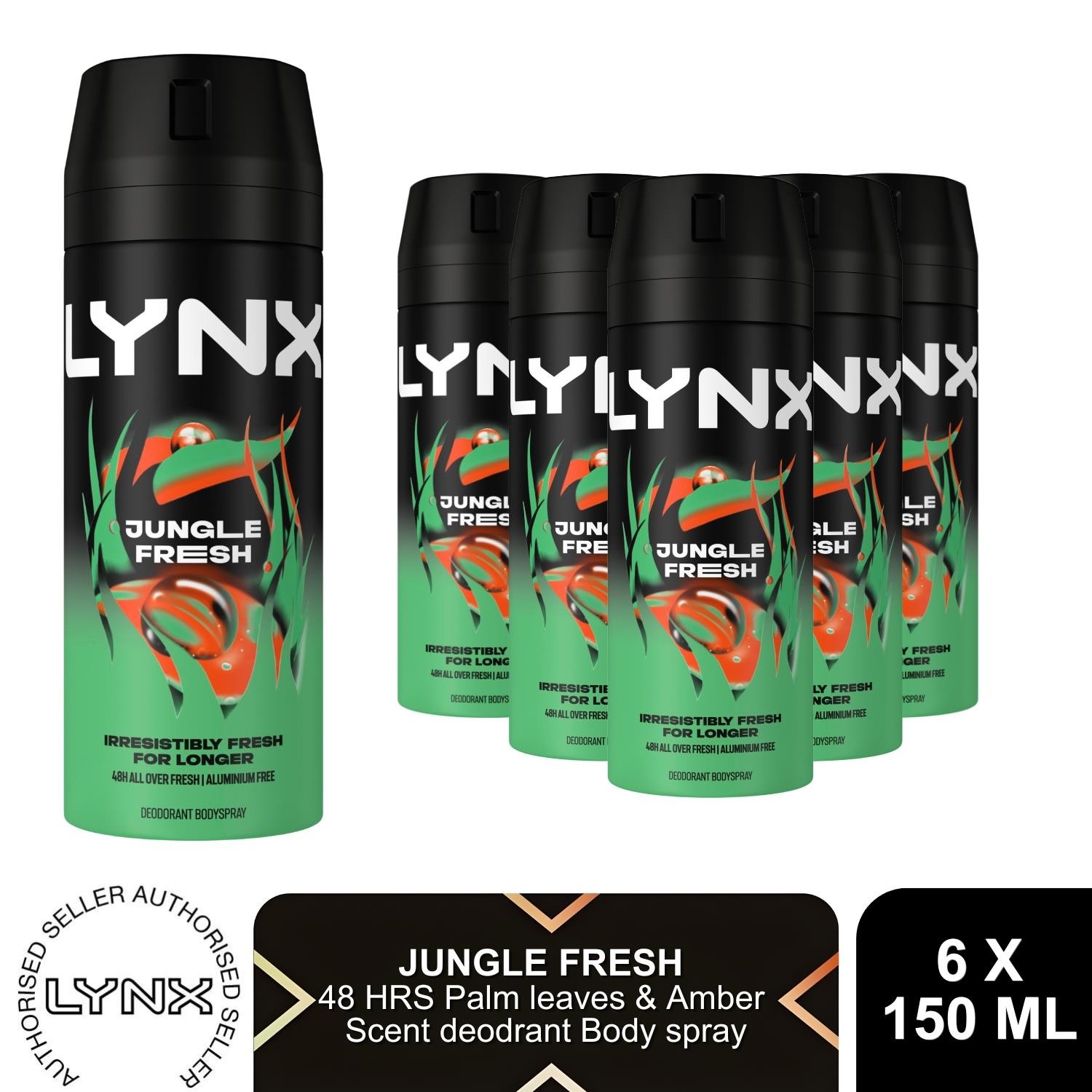 Lynx Body Spray Jungle Fresh 48H High Definition Fragrance Deodorant 150ml, 6pk