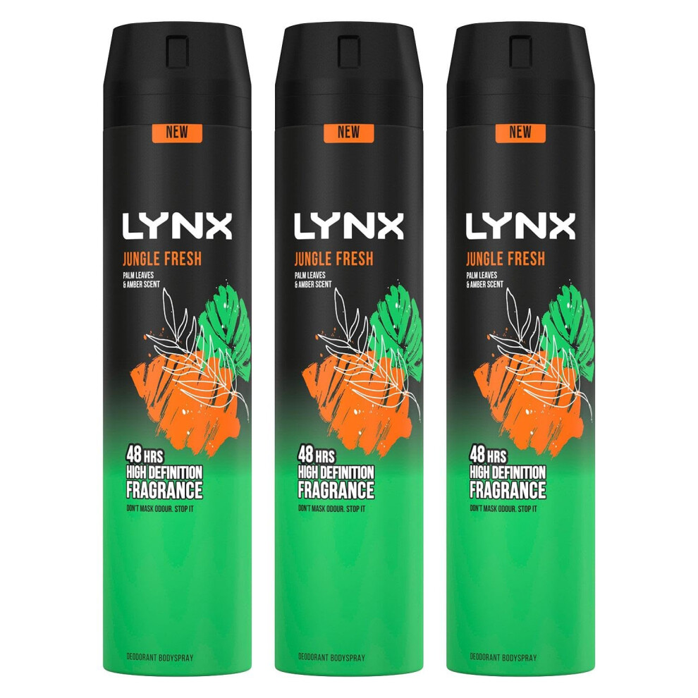 Lynx Mens Body Spray Jungle Fresh 48Hrs Protection High Definition Fragrance, 3x200ml - One Size