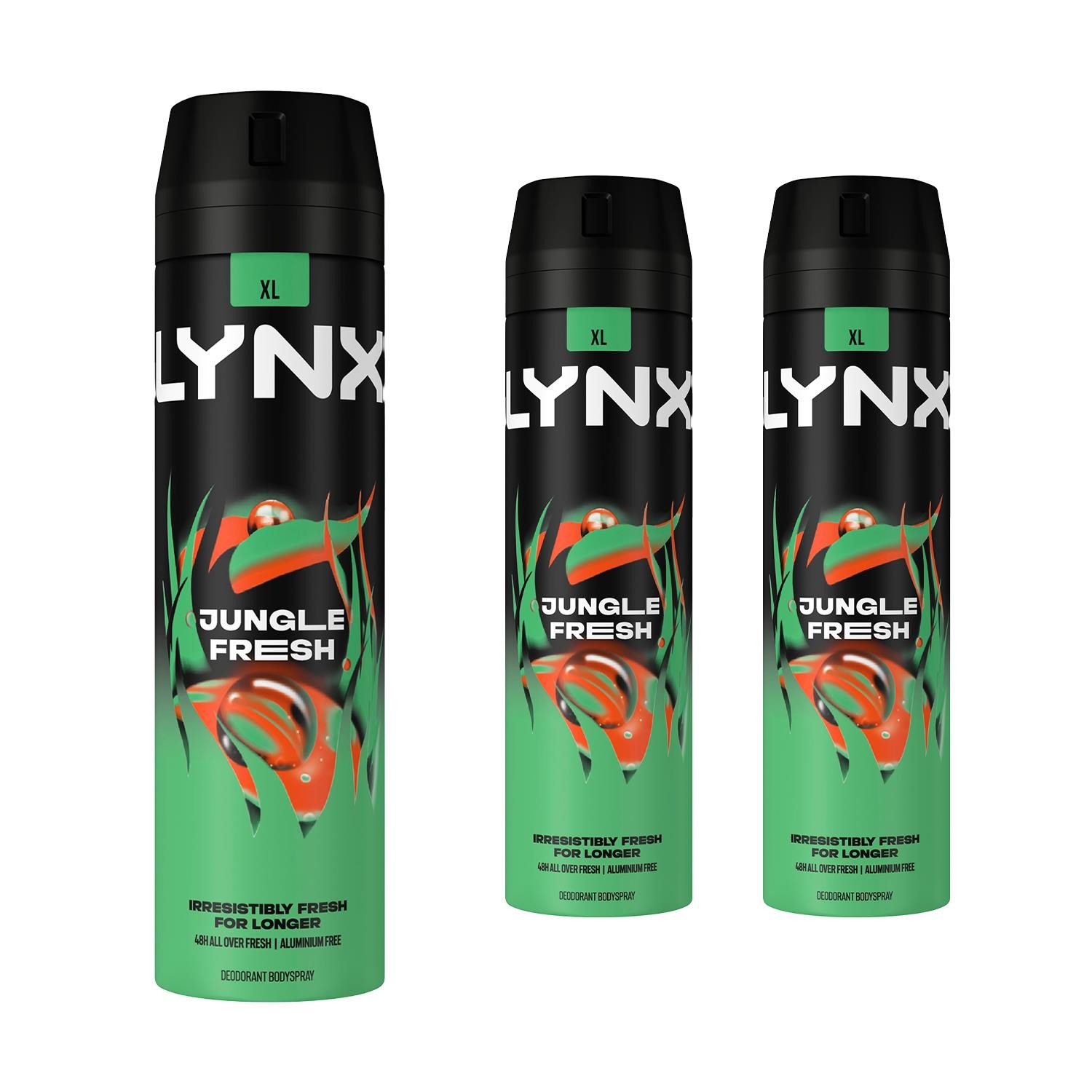 Lynx XL Jungle Fresh Body Spray Deodorant for Men 200ml Pack of 3, 48H Odour Protection Bodyspray Aerosol, PALM LEAF & AMBER FRAGRANCE, Lynx Deodorant Mens Everyday Freshness
