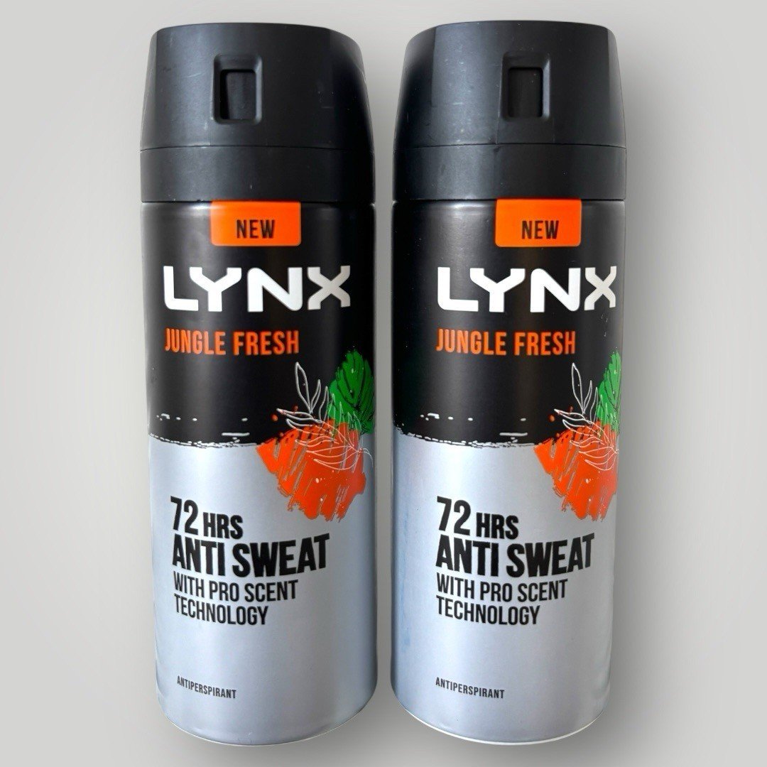 Lynx Jungle Fresh 72 HRS Anti Sweat Anti-Perspirant Body Spray for Men, 2x150ml