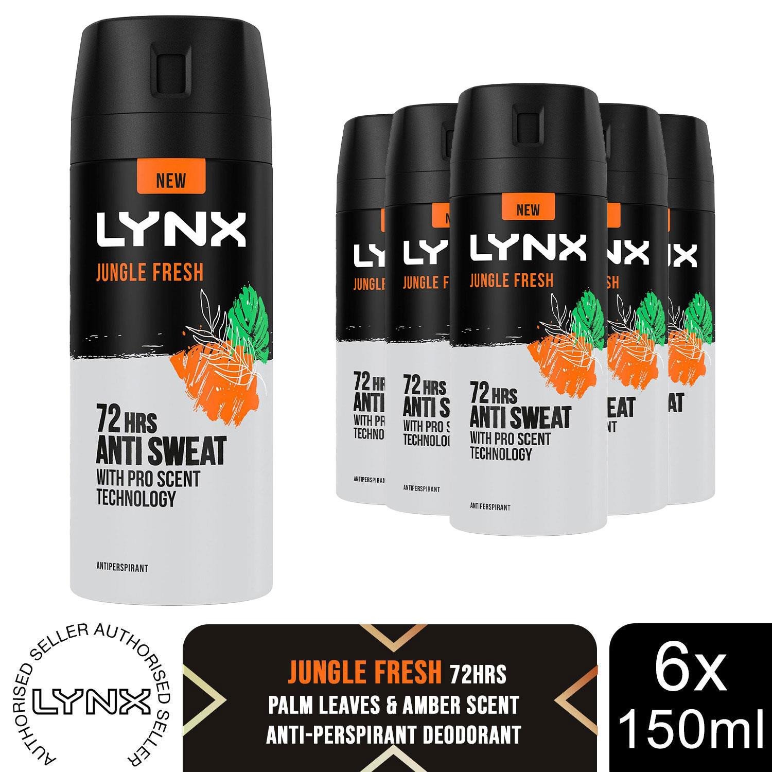 Lynx Jungle Fresh 72 HRS Anti Sweat Anti-Perspirant Body Spray for Men, 6x150ml