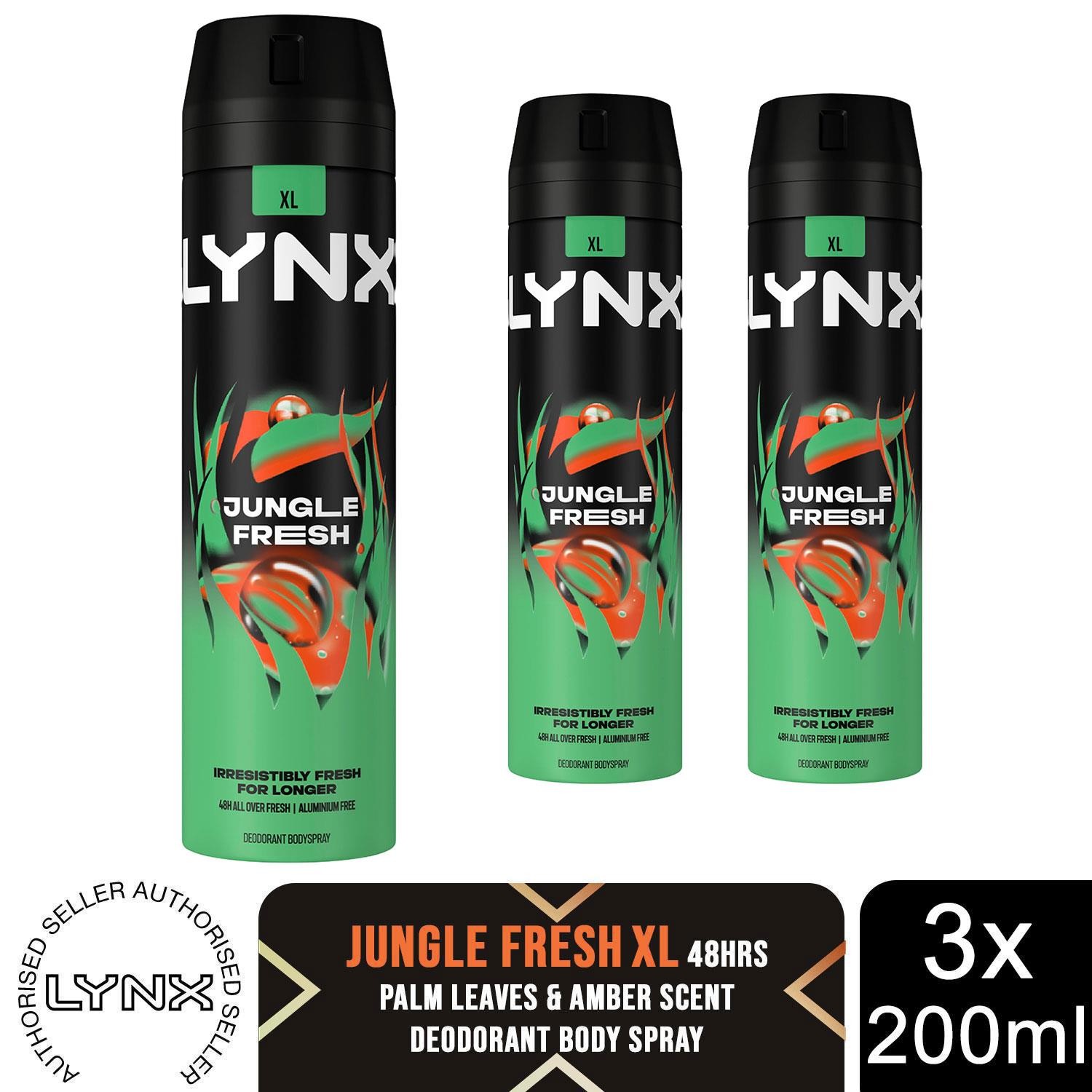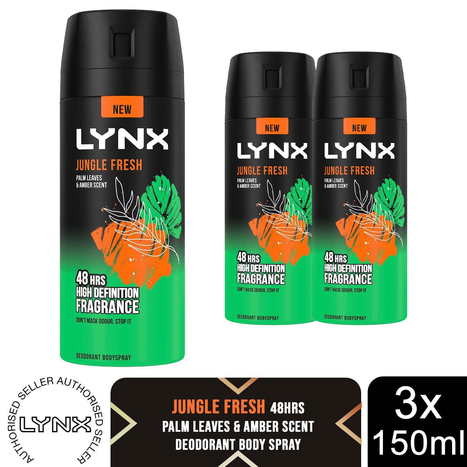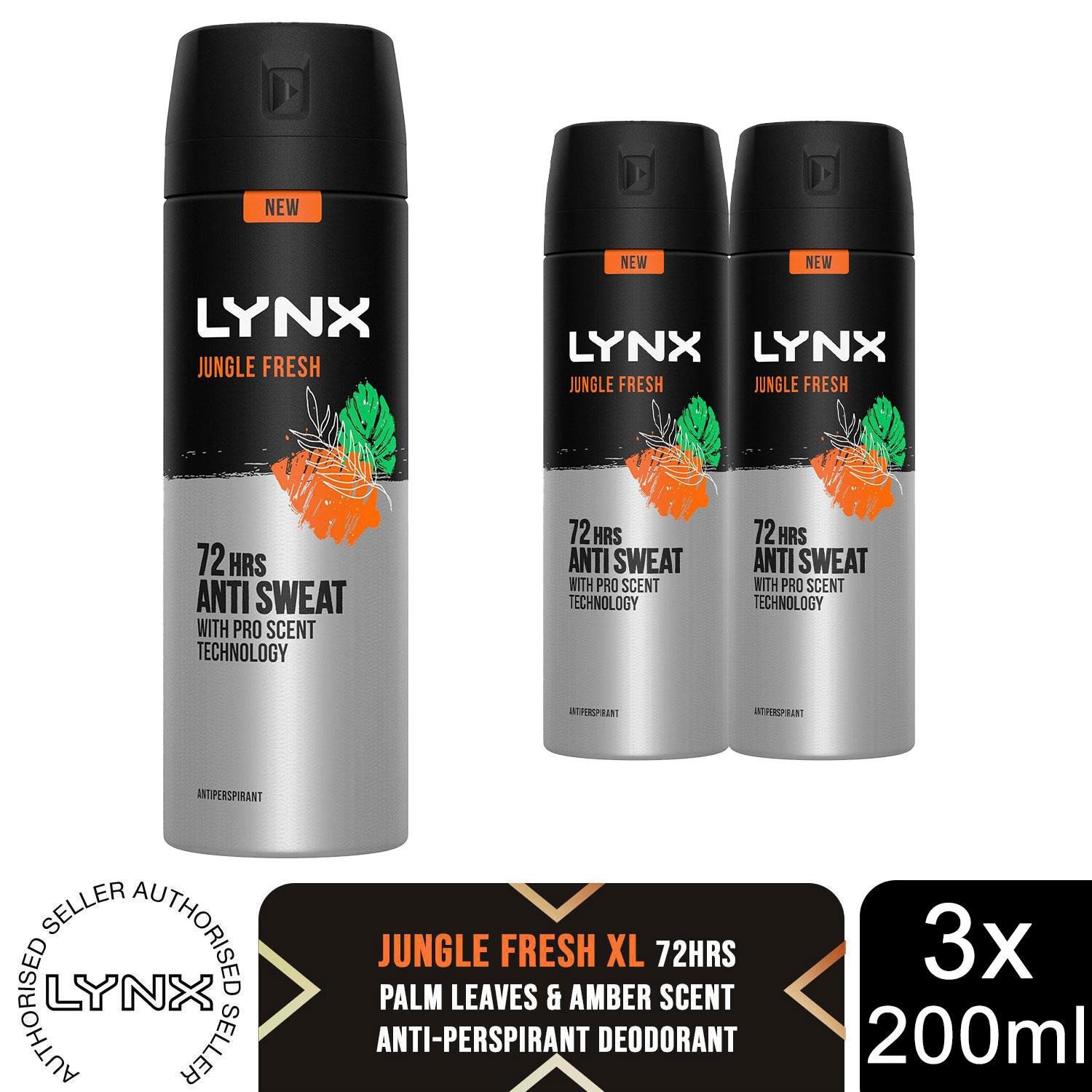 Lynx Jungle Fresh 72 HRS Anti Sweat Anti-Perspirant Body Spray for Men, 3x150ml
