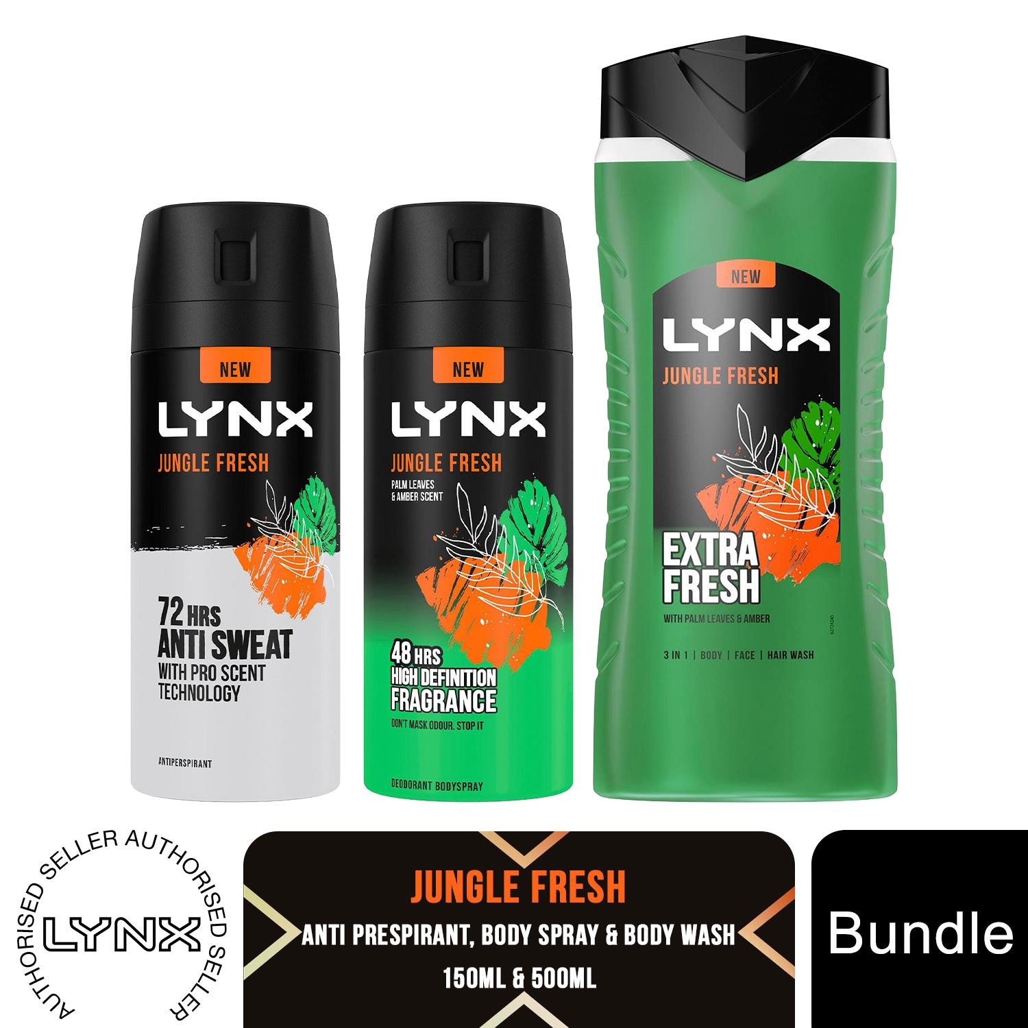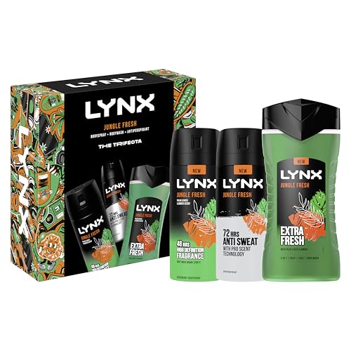 Lynx Jungle Fresh Trifecta 3 piece Gift Set with Deodorant Body Spray, Body Wash & Antiperspirant
