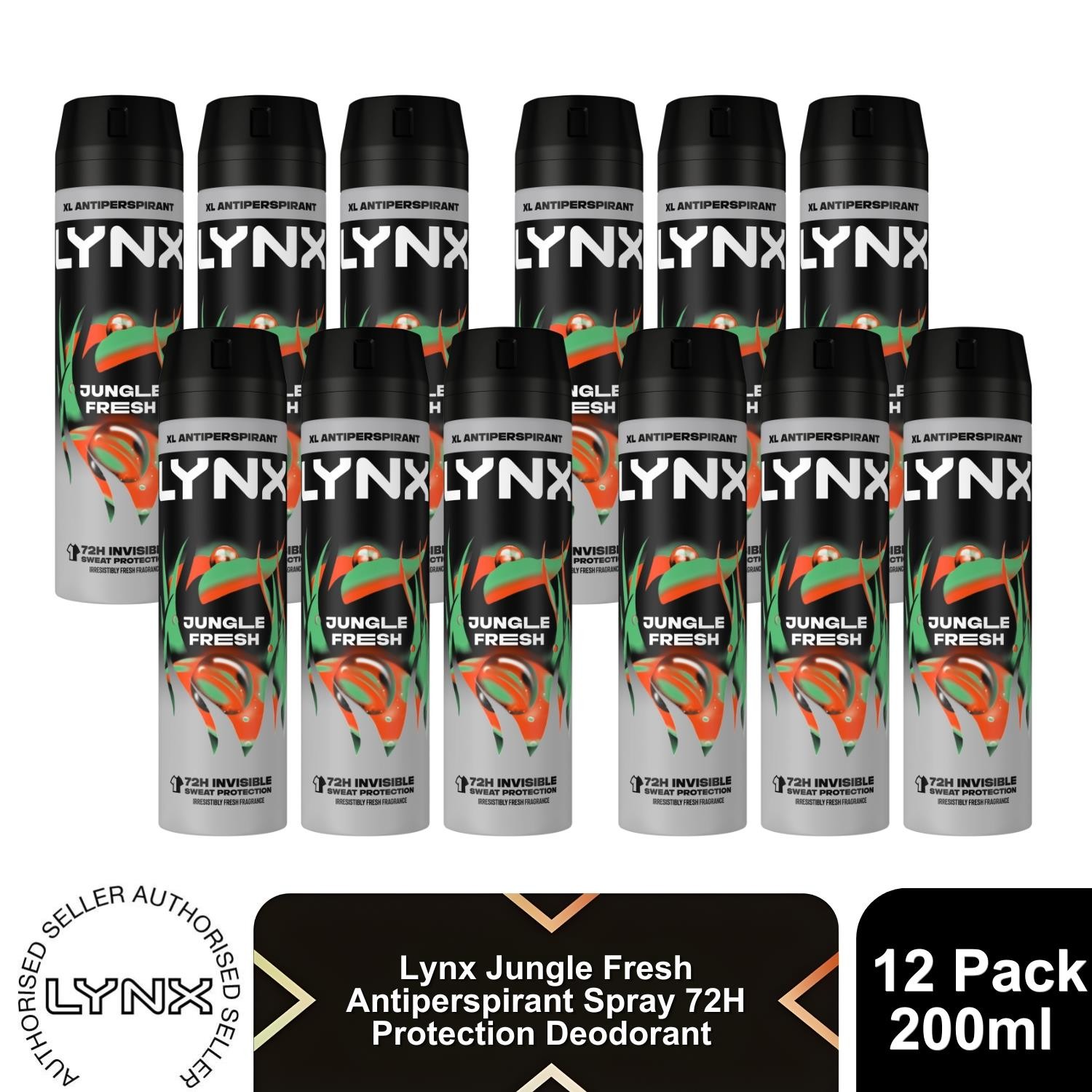 Lynx Jungle Fresh Antiperspirant Spray 72H Protection Deodorant 200ml, 12 Pack