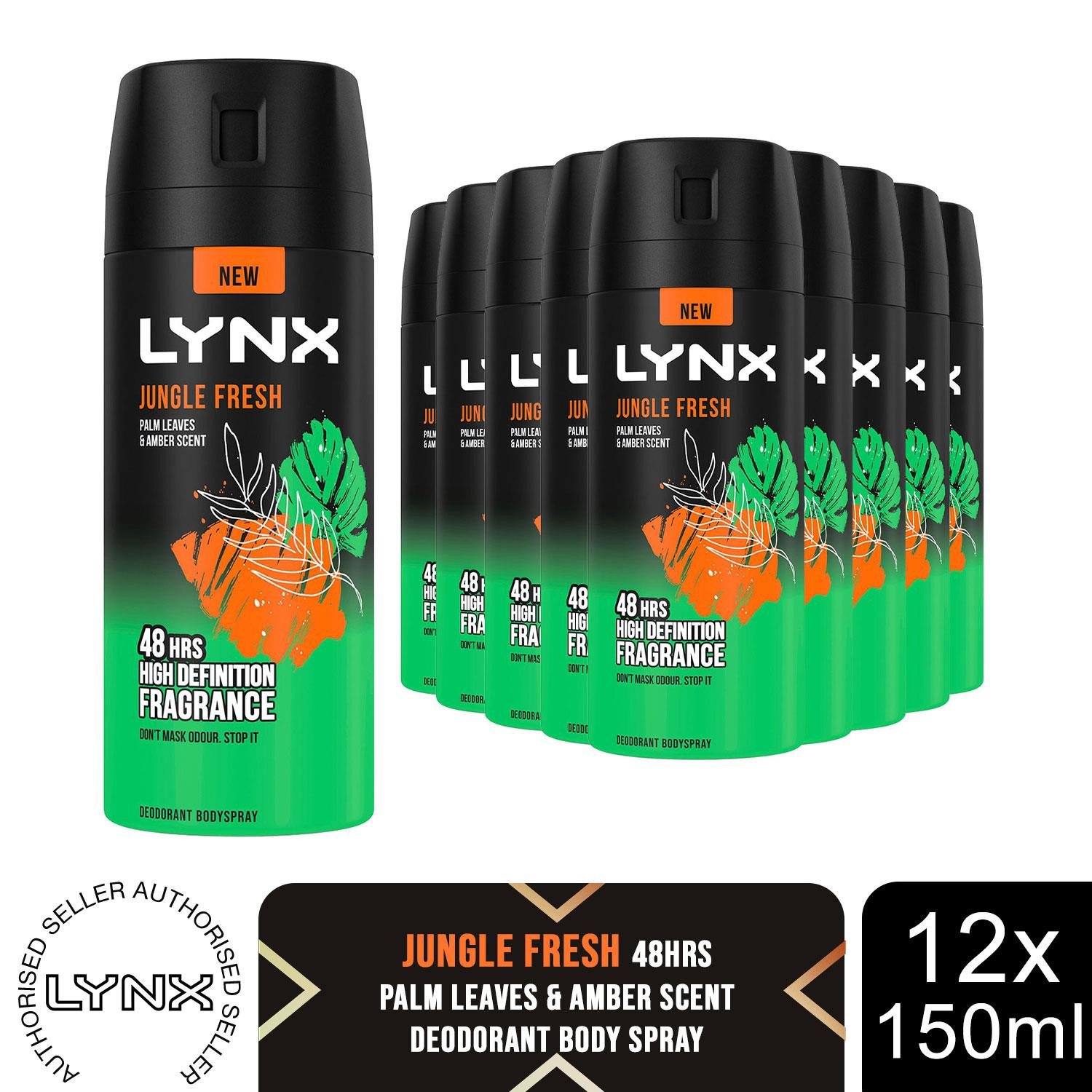 Lynx Body Spray Jungle Fresh 48H High Definition Fragrance Deodorant 150ml, 12pk