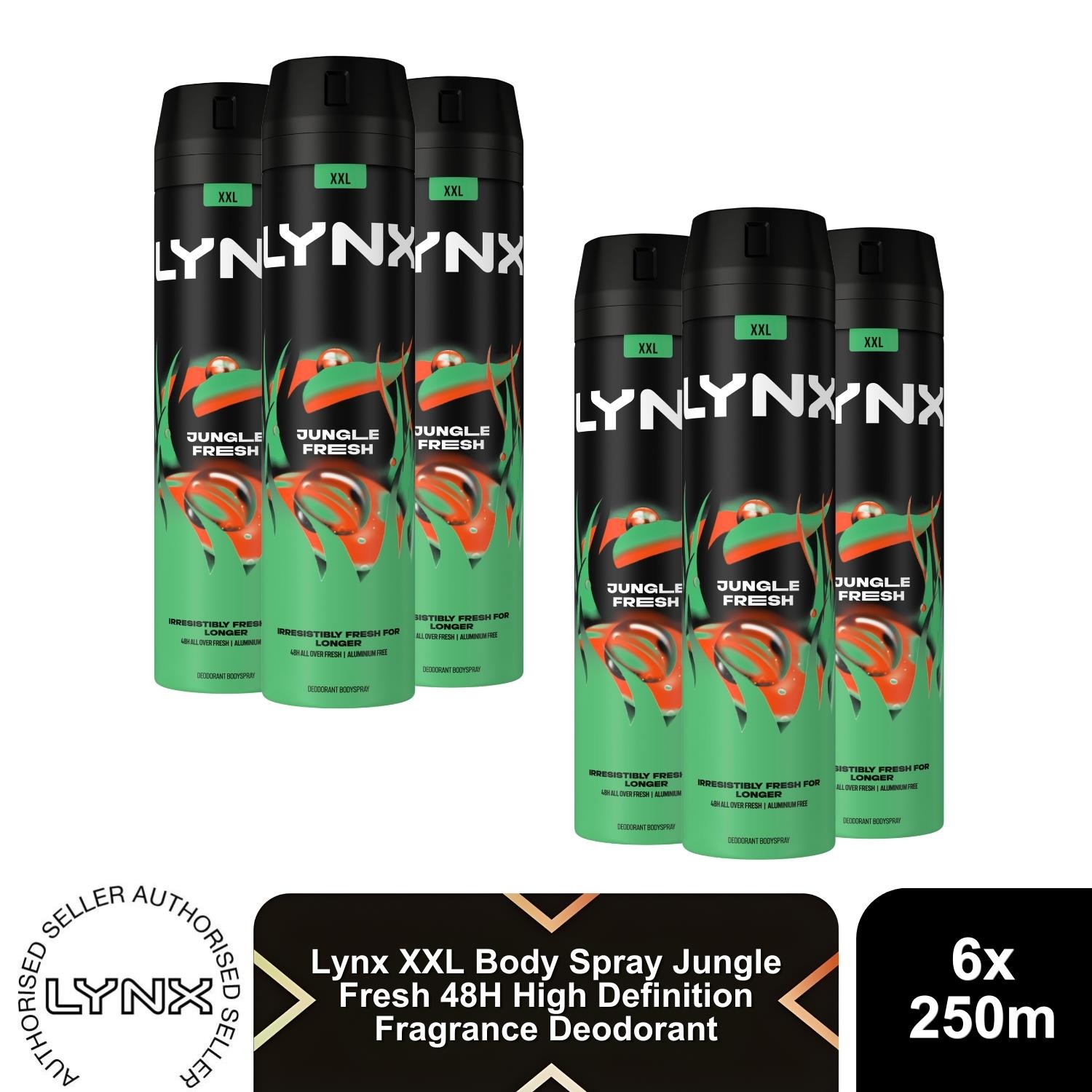 Lynx Mens XXL Body Spray Jungle Fresh 48H High Definition Fragrance Deodorant,6x250ml - One Size