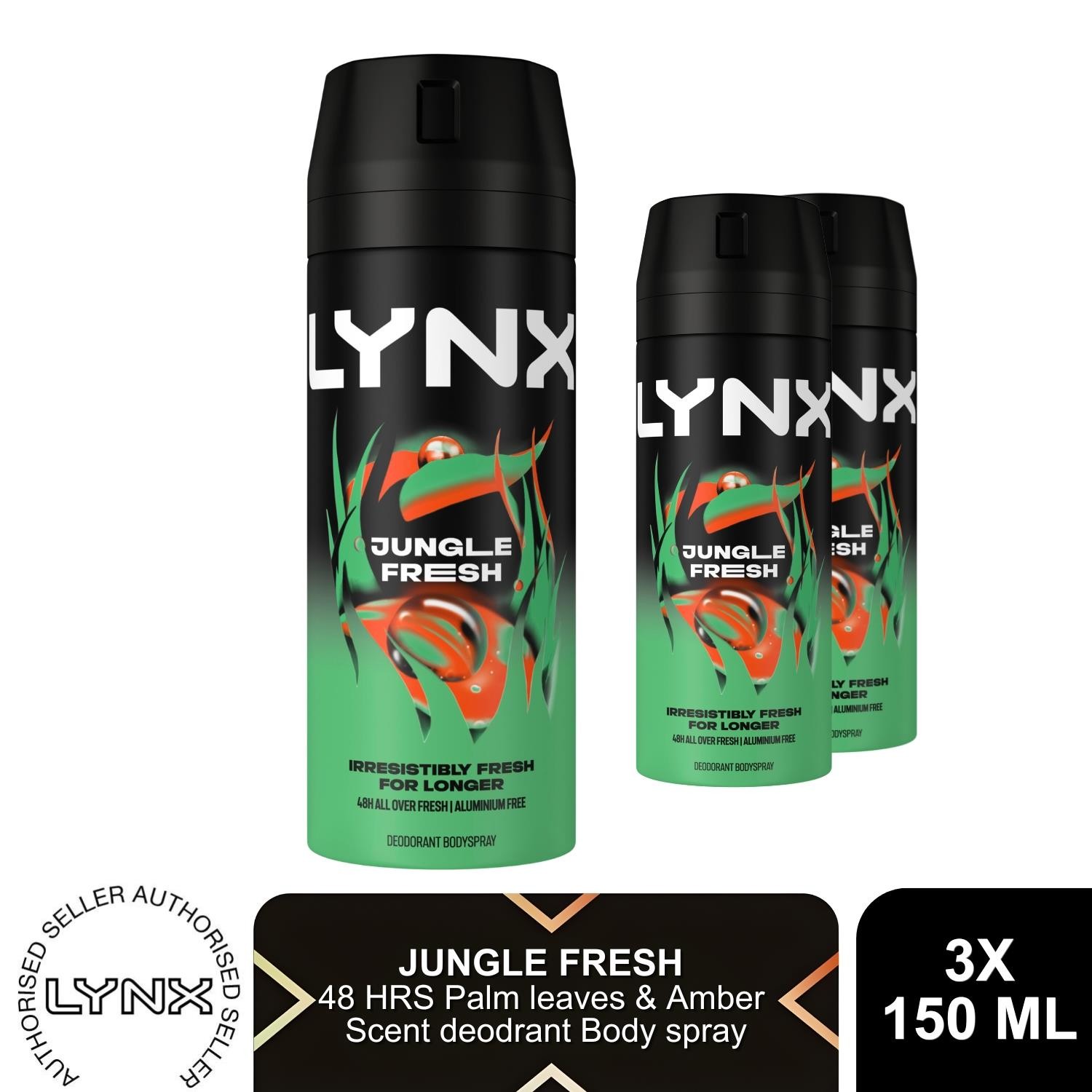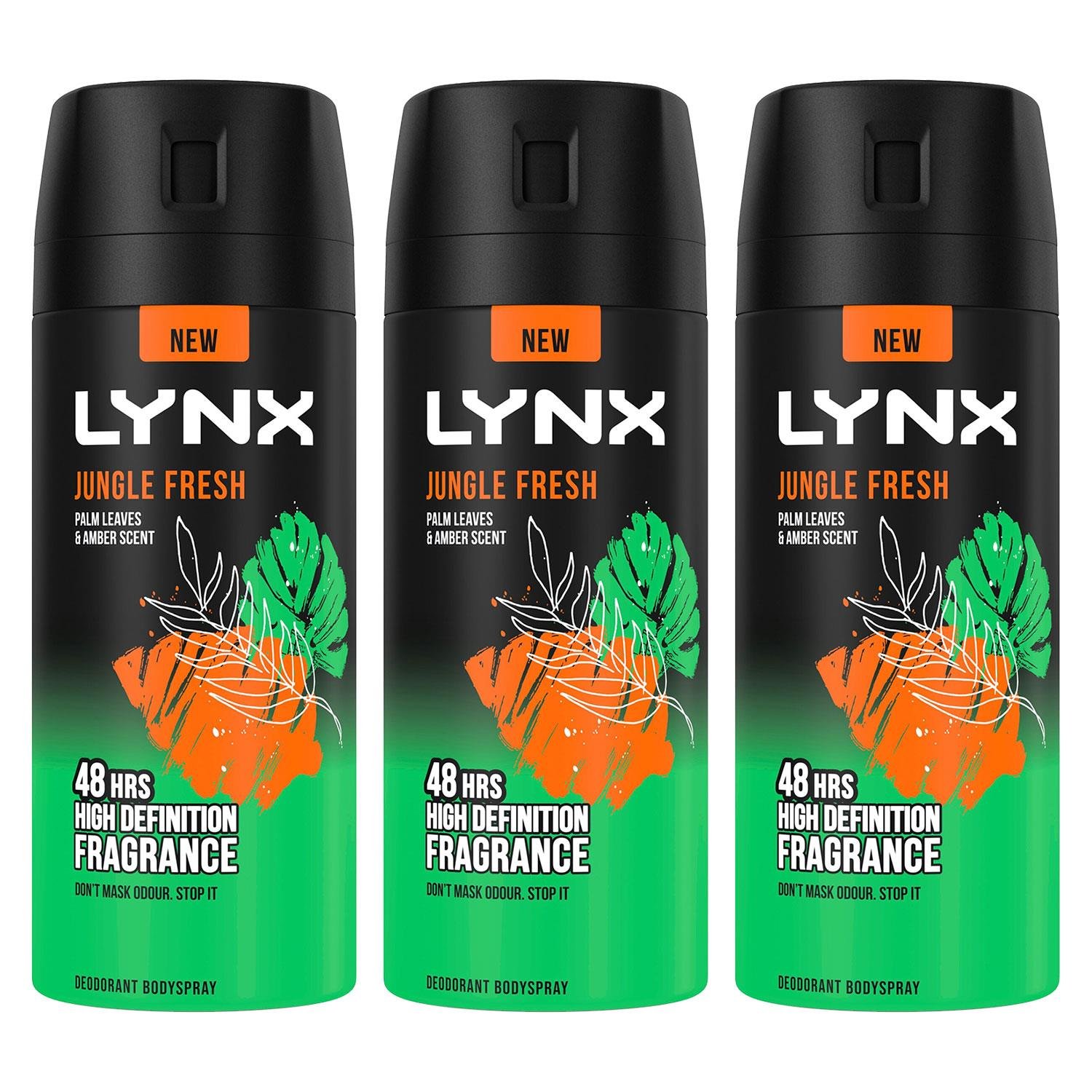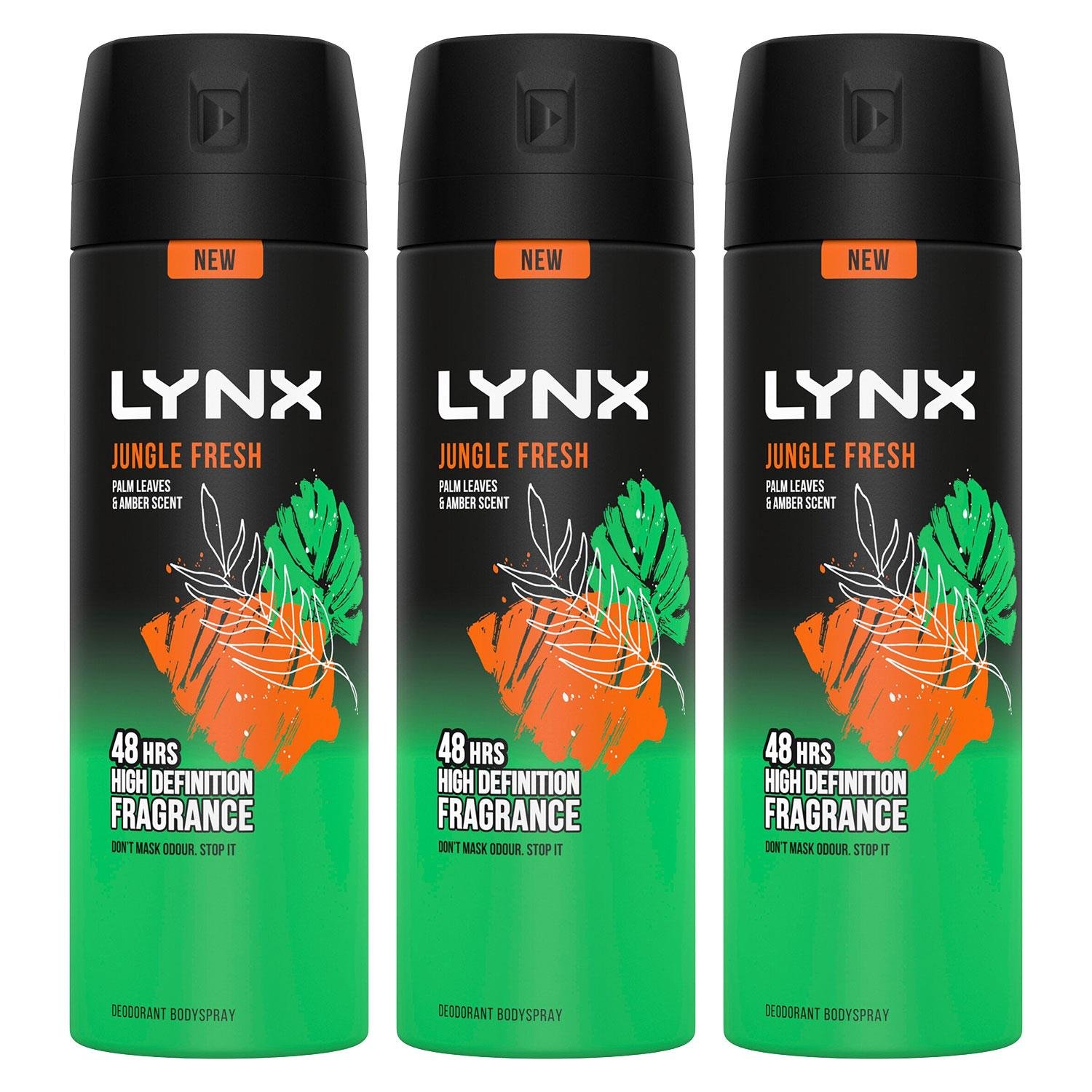 Lynx Body Spray Jungle Fresh 48H High Definition Fragrance Deodorant 150ml, 3pk