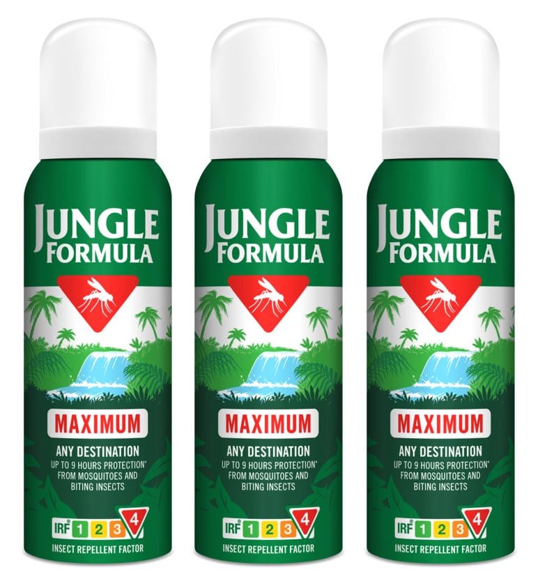 3 x Jungle Formula MAX Strength Insect Repellent Aerosol Spray 125ml 50% DEET UK