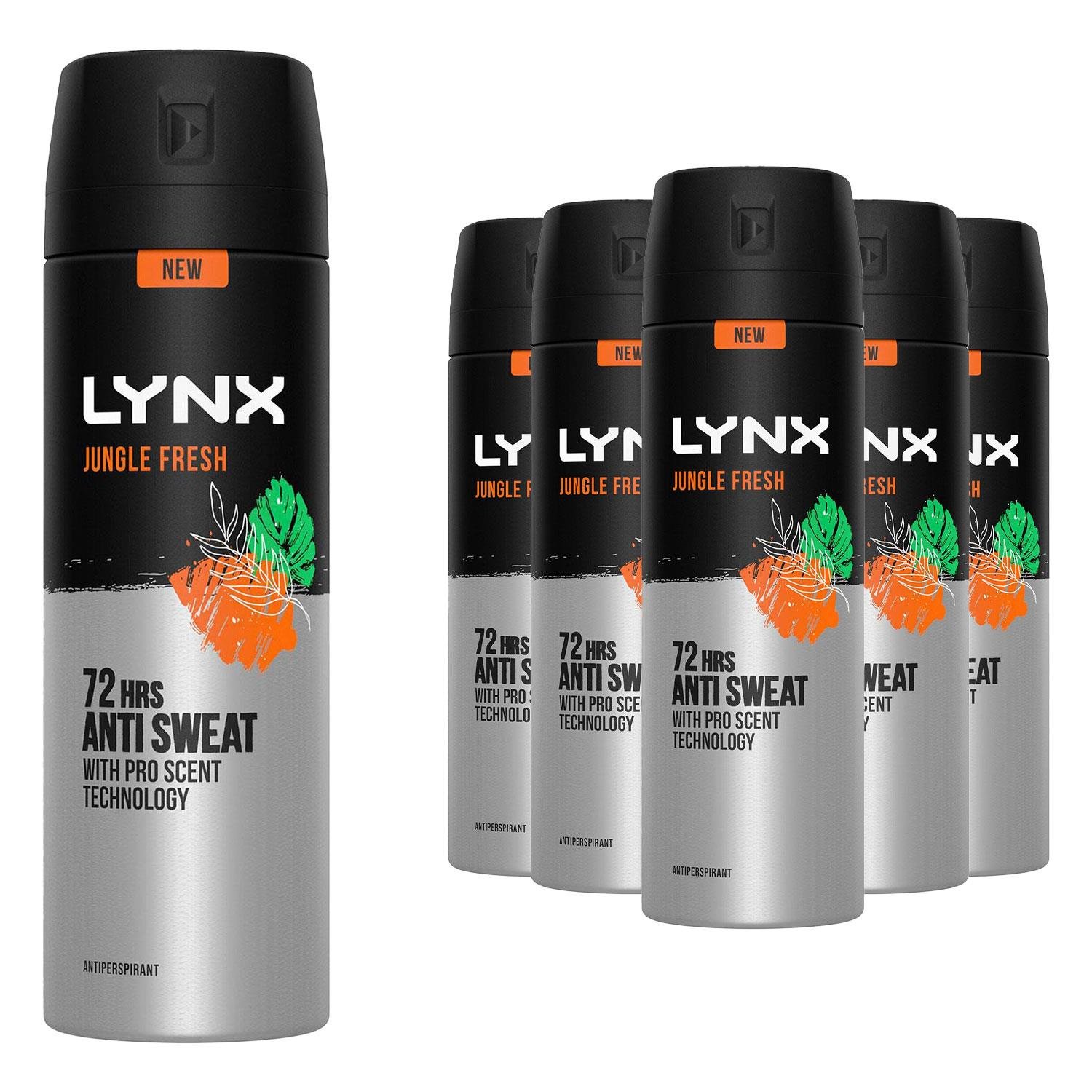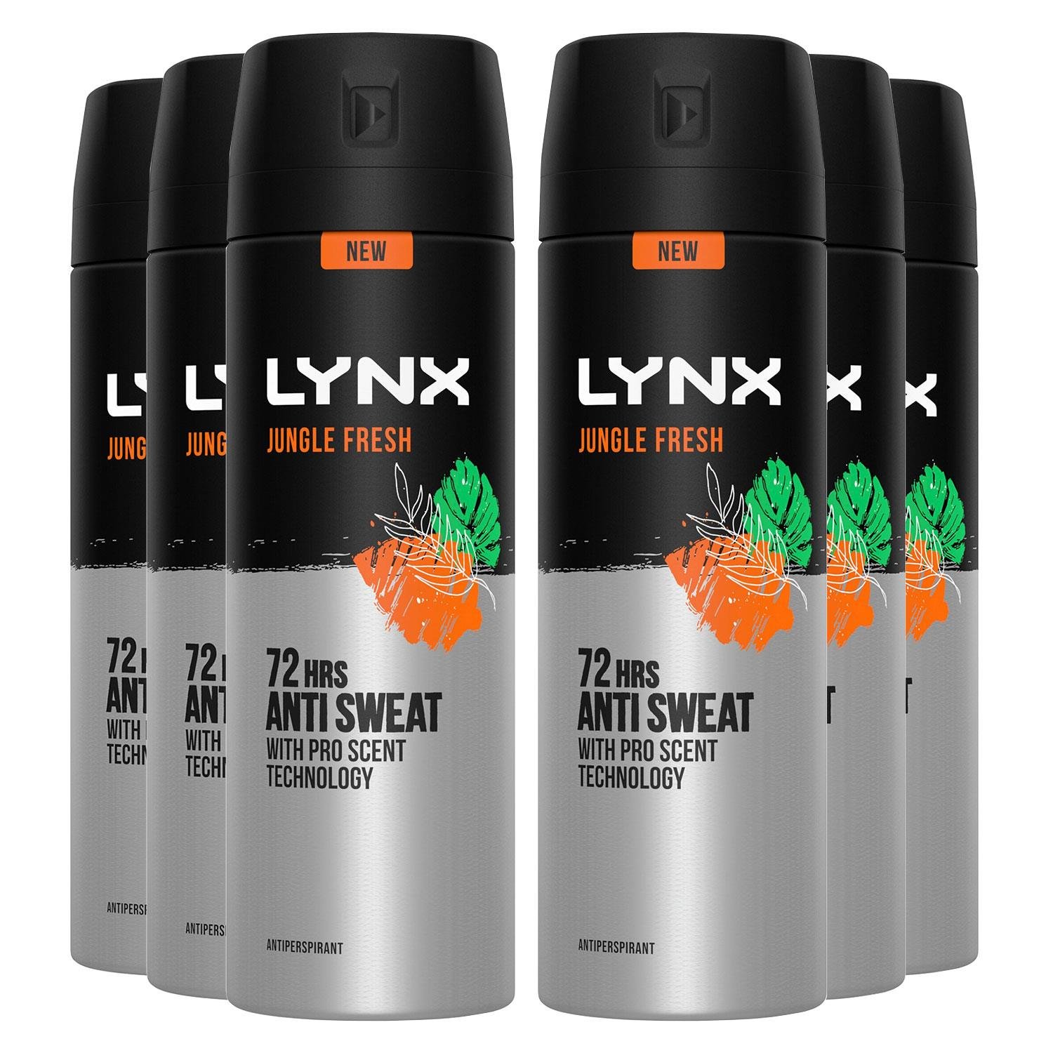 Lynx Mens Jungle Fresh Antiperspirant Spray 72H Protection Deodorant 200ml, 6 Pack - One Size